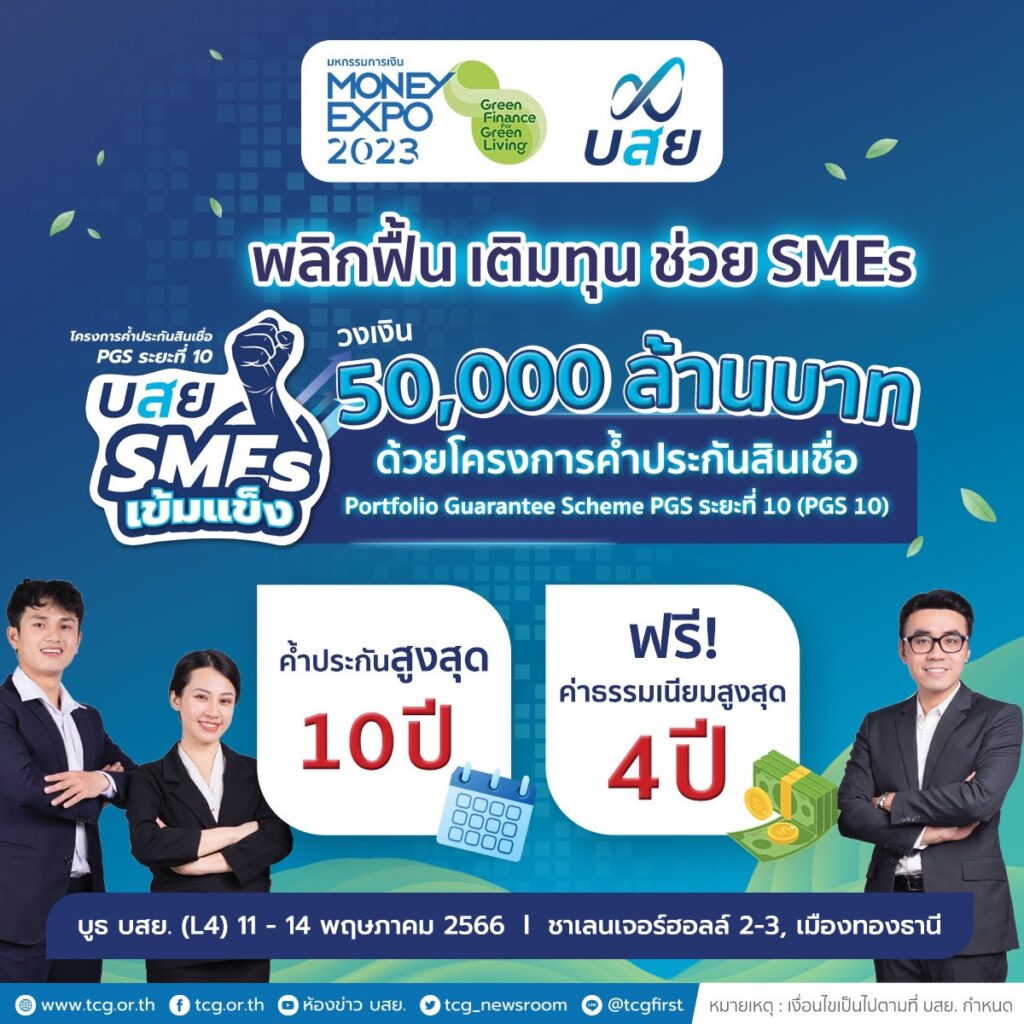 กรุงเทพฯ 9 พ.ค. – บสย. ลุยช่วยผู้ประกอบการ จัด “บสย. SMEs เข้มแข็ง” เข้าถึงสินเชื่อ-เติมสภาพคล่อง งาน Money Expo 2023 ค้ำประกันผ่าน PGS 10 วงเงิน 50,000 ล้านบาท