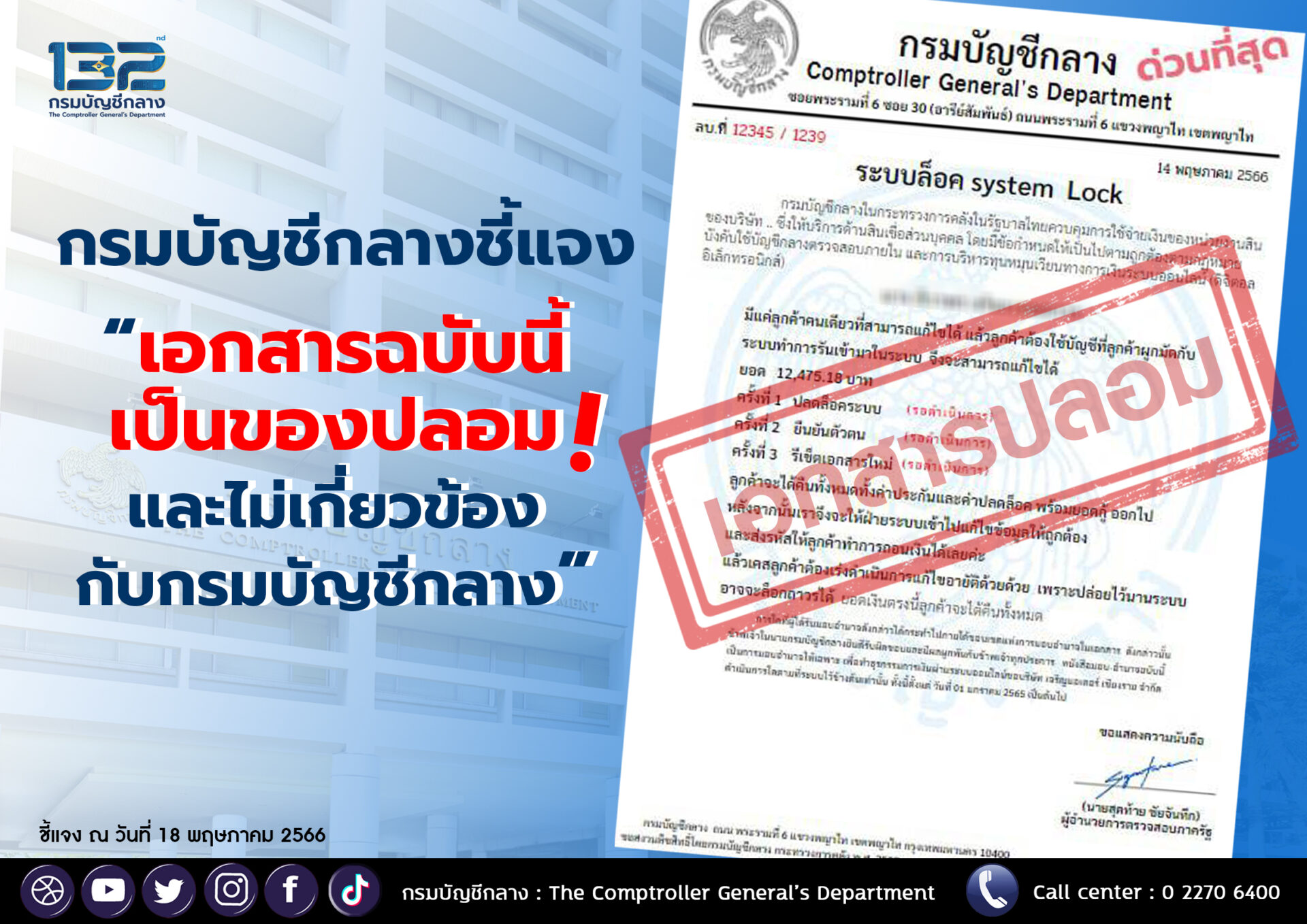 นางสาววารี แว่นแก้ว รองอธิบดีกรมบัญชีกลาง ในฐานะโฆษกกรมบัญชีกลาง เปิดเผยว่า กรมบัญชีกลางได้รับแจ้งจากประชาชนว่า ขณะนี้มีมิจฉาชีพแอบอ้างชื่อกรมบัญชีกลาง ประกอบการให้กู้ยืมเงินแบบออนไลน์ โดยการส่งลิงก์ Line Official ให้สมัครกู้ยืมเงินผ่านทาง Facebook ทำให้ประชาชนหลงเชื่อ เข้าไปสมัครและกรอกข้อมูลส่วนตัว และให้ทำธุรกรรมทางการเงิน โดยในขั้นตอนของการปลดล็อคบัญชีเงินฝากธนาคาร กลุ่มมิจฉาชีพได้แอบอ้างชื่อกรมบัญชีกลางในเอกสารระบบล็อค System Lock เพื่อหลอกลวงให้ประชาชนหลงเชื่อ