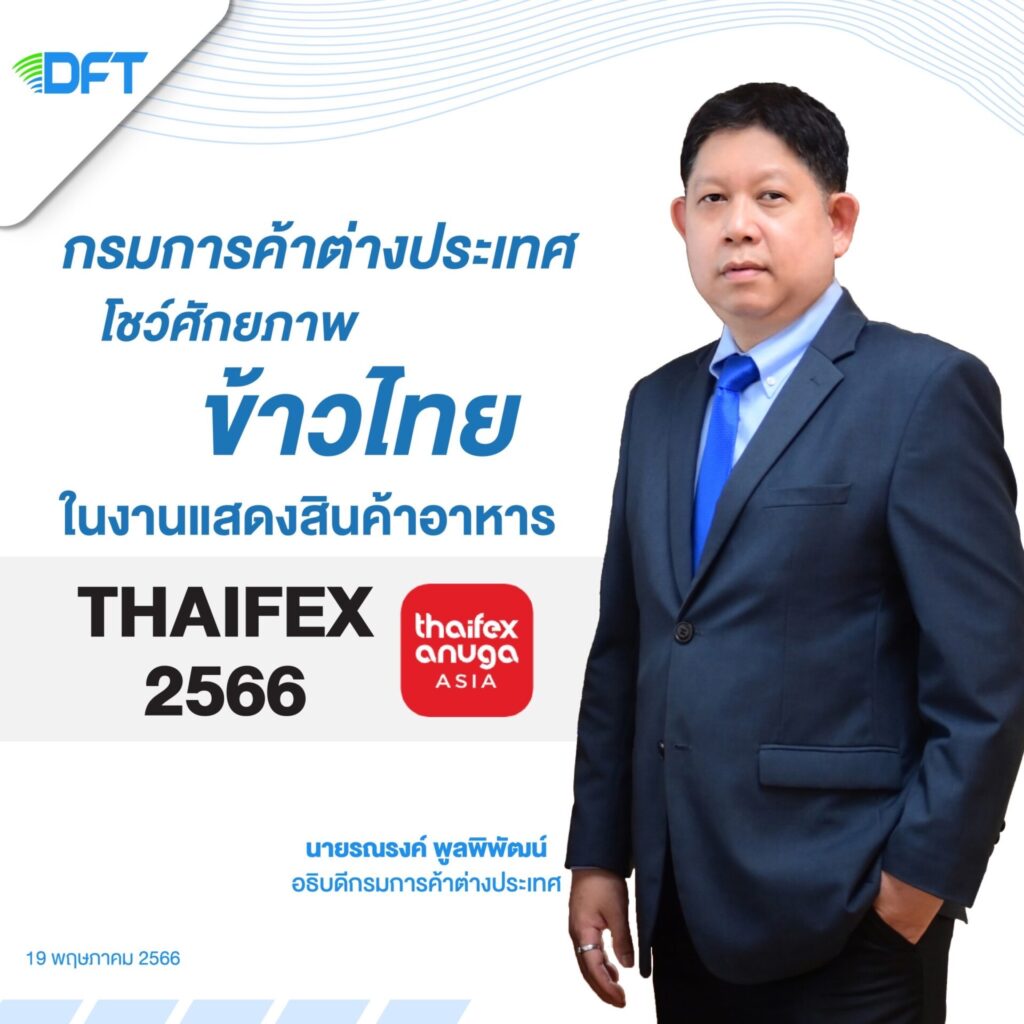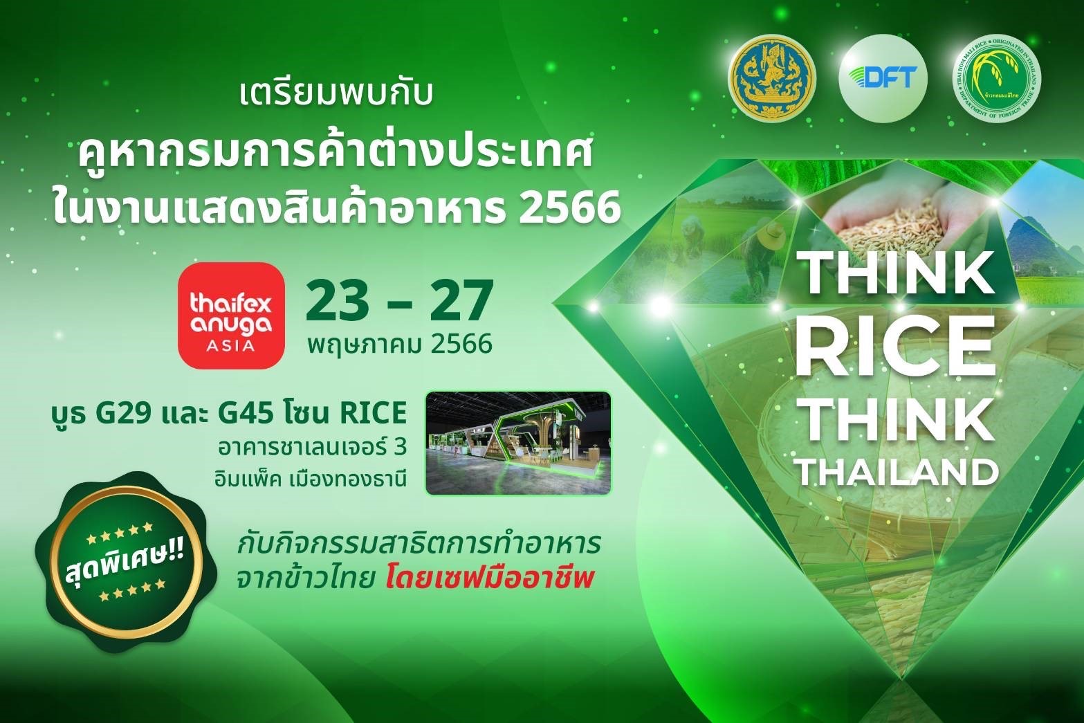 นายรณรงค์ พูลพิพัฒน์ อธิบดีกรมการค้าต่างประเทศ เปิดเผยว่า งานแสดงสินค้าอาหาร 2566 (THAIFEX – ANUGA ASIA 2023) จะมีการจัดแสดงสินค้าข้าวไทยโดยกรมการค้าต่างประเทศ ณ Zone Rice คูหาหมายเลข G29 และ G45 อิมแพ็คชาเลนเจอร์ Hall 3 ศูนย์แสดงสินค้าและการประชุมอิมแพ็ค เมืองทองธานี จังหวัดนนทบุรี ระหว่างวันที่ 23 – 27 พฤษภาคม 2566 โดยกิจกรรมภายในคูหา ประกอบด้วย การจัดนิทรรศการแสดงตัวอย่างข้าวไทยชนิดต่างๆ การสาธิตการตรวจสอบมาตรฐานข้าว การสาธิตการปรุงอาหารจากข้าวไทยโดยเชฟมืออาชีพแถวหน้าของไทยนำโดยเชฟทีม สว่างอารมย์ Influencer Chef ที่มีผู้ติดตามกว่า 3 ล้านคน ให้ผู้เข้าชมงานได้สัมผัสรสชาติของข้าวไทยที่มีความหลากหลายและเป็นเอกลักษณ์
