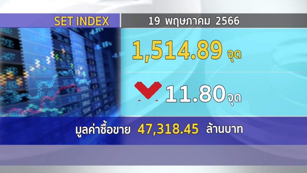 กทม. 19 พ.ค.- SET ปิดวันนี้ที่ 1,514.89 จุด ลดลง 11.80 จุด (-0.77%) มูลค่าการซื้อขาย 47,318.45 ล้านบาท