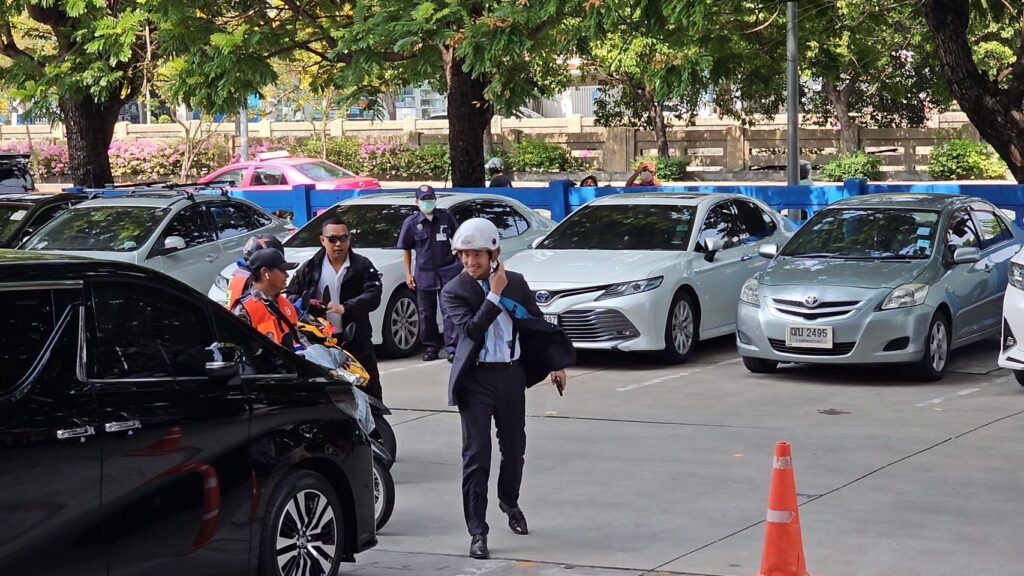 โดยวันนี้ นายพิธา ซ้อนท้ายรถจักรยานยนต์รับจ้างเข้ามาจอดที่ด้านหน้าอาคาร ส.อ.ท. ท่ามกลางสื่อมวลชนที่มาดักรอ ก่อนเดินทางขึ้นไปประชุมบนชั้น 8 ของอาคาร