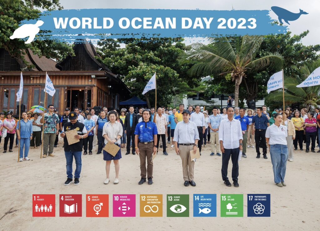 8 มิ.ย. – ธนาคารกรุงไทย ร่วมกับโครงการพัฒนาแห่งสหประชาชาติ (UNDP) ประเทศไทย ประชาคมชาวเกาะ จำนวน 21 เกาะ และ ภาคีเครือข่าย จำนวน 23 องค์กร ร่วมประกาศปฏิญญาชาวเกาะเนื่องในวันมหาสมุทรโลก ซึ่งตรงกับวันที่ 8 มิถุนายนของทุกปี เพื่อขับเคลื่อนไปสู่เป้าหมายพัฒนาการท่องเที่ยวอย่างยั่งยืน ภายใต้ยุทธศาสตร์ชาติด้านการท่องเที่ยวด้วยการขับเคลื่อนโมเดล Bio Circular Green (BCG) : เศรษฐกิจชีวภาพ เศรษฐกิจหมุนเวียน และเศรษฐกิจสีเขียว พร้อมส่งมอบซั้งปลาให้ชาวประมง เป็นการแสดงจุดยืนเชิงสัญลักษณ์ว่าประชาคมชาวเกาะทั่วประเทศไทยจะร่วมกันปกป้องทรัพยากรทางทะเล เพื่อรักษาความอุดมสมบูรณ์และคงภูมิปัญญาและวิถีชีวิตของชุมชนชาวเกาะให้คงอยู่ ในวันที่ระดับน้ำทะเลกำลังเปลี่ยนแปลงไป (Protect Ocean: Tides are changing)