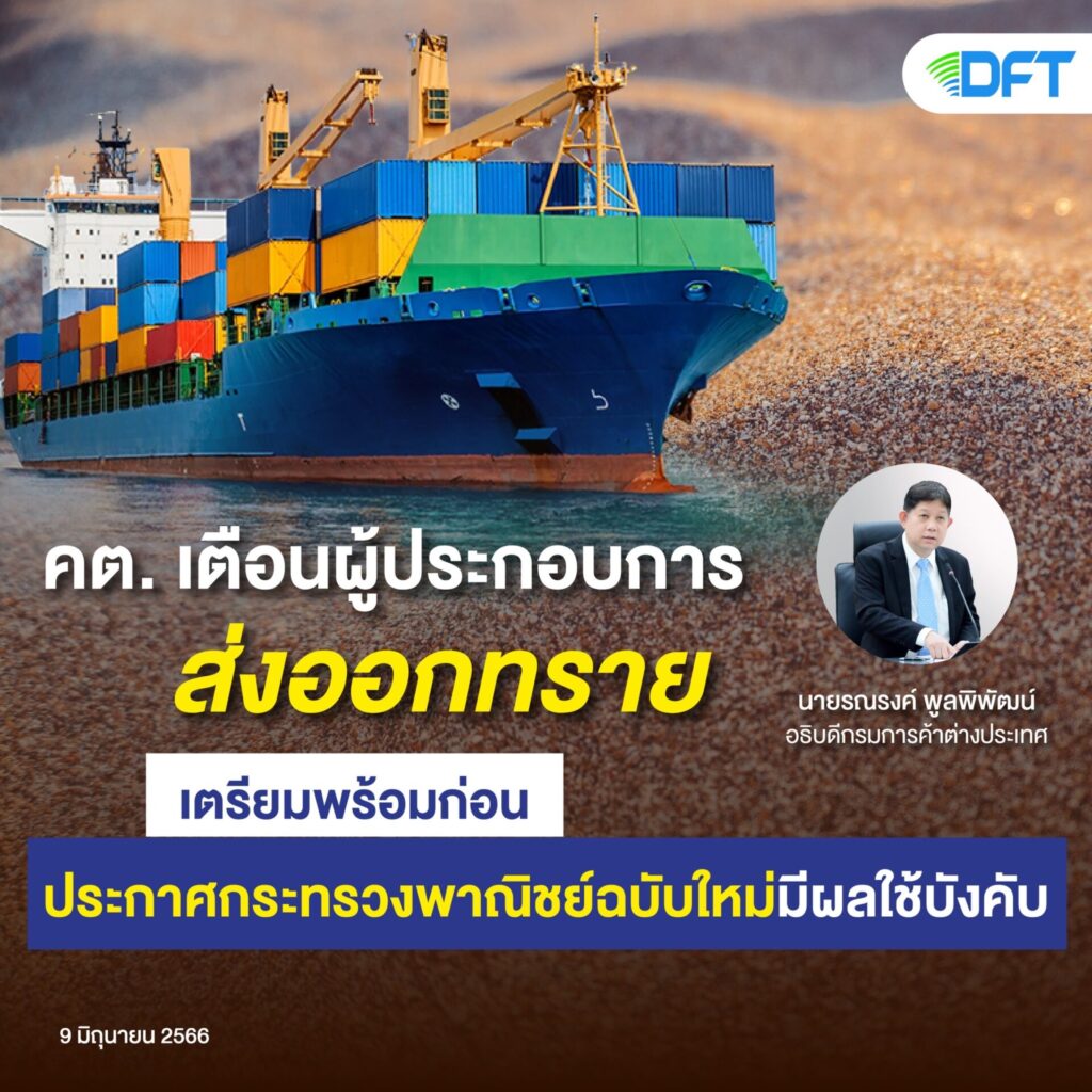 นายรณรงค์ พูลพิพัฒน์ อธิบดีกรมการค้าต่างประเทศ เปิดเผยว่า กรมการค้าต่างประเทศได้ดำเนินการทบทวนแก้ไขปรับปรุงมาตรการกำกับดูแลการส่งออกสินค้าทรายภายใต้ประกาศกระทรวงพาณิชย์ เรื่อง กำหนดให้ทรายเป็นสินค้าที่ต้องห้ามในการส่งออกไปนอกราชอาณาจักร พ.ศ. 2566 ลงวันที่ 28 เมษายน 2566 เพื่อให้สอดคล้องกับสถานการณ์การค้าและเป็นการอนุรักษ์ทรัพยากรธรรมชาติและป้องกันผลกระทบต่อสิ่งแวดล้อม อีกทั้งเพื่อให้เกิดความชัดเจน ลดปัญหาการใช้ดุลยพินิจ และอำนวยความสะดวกทางการค้า ประกอบกับลดความซ้ำซ้อนทางกฎหมายในการกำกับดูแลการส่งออกเนื่องจากปัจจุบันแร่ที่มีทรายเป็นส่วนประกอบได้กำหนดมาตรการภายใต้การกำกับดูแลของ พ.ร.บ. แร่ พ.ศ. 2560 แล้ว
