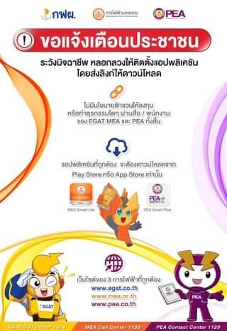 3 การไฟฟ้าย้ำว่า จากกรณีที่มีการคนแอบอ้างใช้ชื่อหน่วยงาน และ พนักงาน ของ 3 การไฟฟ้า ในการชักชวนลงทุนหรือทำธุรกรรมทางการเงินผ่านทาง Facebook / เว็บไซต์ /แอปพลิเคชัน / ข้อความ SMS / LINE หรือ Social Media ใดๆ