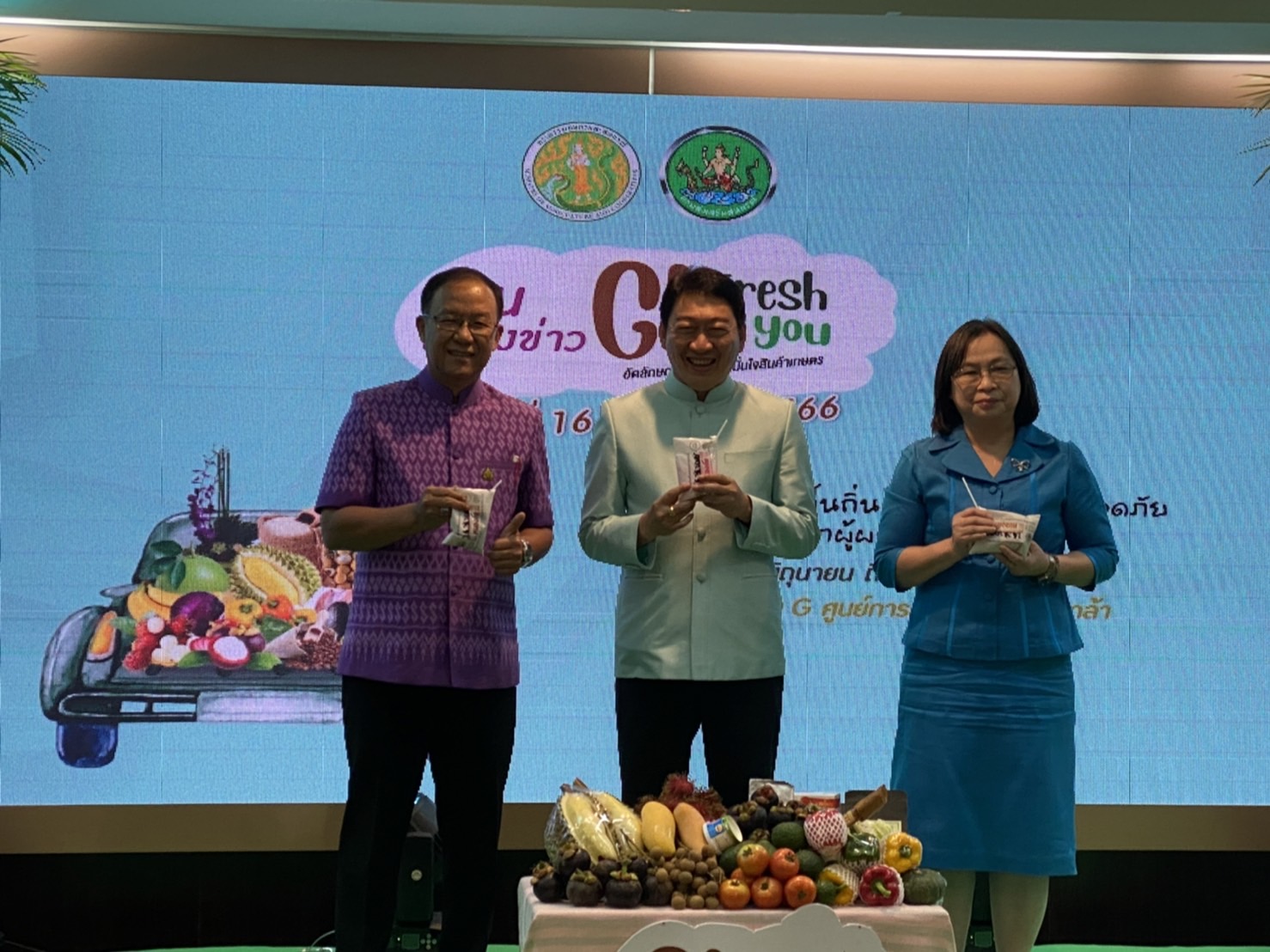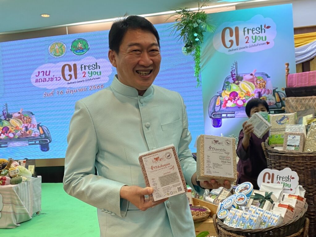 งาน “GI Fresh 2 You อัตลักษณ์ ปลอดภัย มั่นใจสินค้าเกษตร” ได้นำสินค้า GI จากทุกภูมิภาคของประเทศ หลายจังหวัด ไม่ว่าจะเป็น ข้าวชนิดต่าง ๆ จากทุ่งกุลาร้องไห้ ทุ่งสัมฤทธิ์ ข้าวปะกาอำปึล ข้าวเจ้าเนียงกวงจากจังหวัดสุรินทร์ ข้าวสายน้ำแร่แจ้ซ้อนจากจังหวัดลำปาง ผักผลไม้จากภูมิภาคต่างๆ เช่น ทุเรียนภูเขาไฟจากจังหวัดศรีสะเกษ ทุเรียนหมอนทองจากจังหวัดปราจีนบุรี เงาะทุ่งช้างจากจังหวัดน่าน มังคุด 100 ปี จากชุมพร ลำไยสดและผลิตภัณฑ์แปรรูปจากลำไย จากจังหวัดลำปางและลำพูน กล้วยหอมทองจากจังหวัดเพชรบุรี