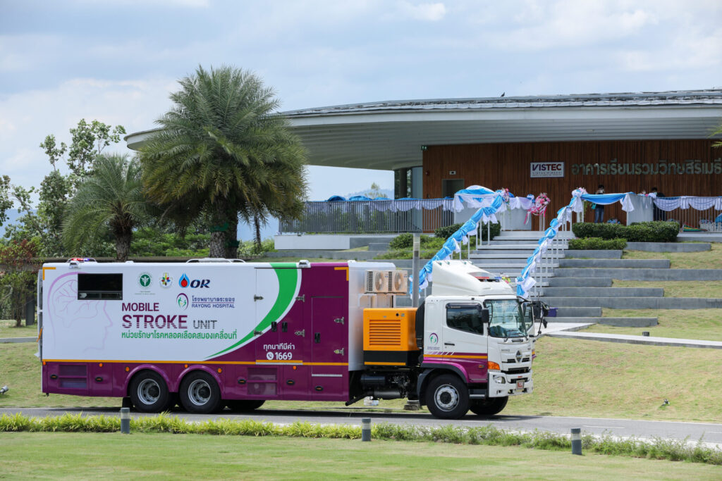 วานนี้ (16 มิ.ย.) ดร.สาธิต ปิตุเตชะ รัฐมนตรีช่วยว่าการกระทรวงสาธารณสุข เป็นประธานในพิธีส่งมอบรถโมบายสโตรคยูนิตร่วมกับระบบปรึกษาทางไกลและการส่งต่อผู้ป่วยโรคหลอดเลือดสมองเฉียบพลันแบบครบวงจร (Mobile Stroke Unit – Stroke One Stop) จาก บริษัท ปตท. น้ำมันและการค้าปลีก จำกัด (มหาชน) (OR) เพื่อให้บริการผู้ป่วยโรค หลอดเลือดสมองเฉียบพลันในพื้นที่จังหวัดระยองโดยส่งมอบ ณ อาคารเรียนรวมวิทยสิริเมธี สถาบันวิทยสิริเมธี (VISTEC) จ.ระยอง