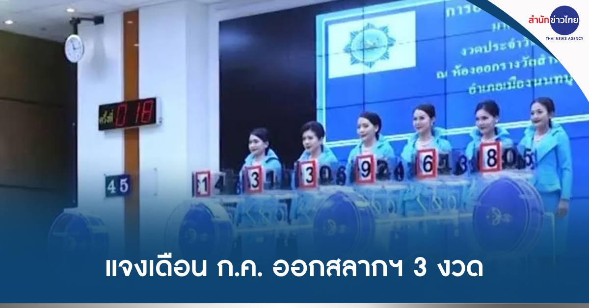 กรุงเทพฯ 20 มิ.ย.-สำนักงานสลากฯ เผยออกสลากกินแบ่งรัฐบาล ในเดือน ก.ค.66 รวม 3 งวด เนื่องจากงวดวันที่ 1 ส.ค.66 ตรงกับวันอาสาฬหบูชา และวันที่ 2 ส.ค.66 ตรงกับวันเข้าพรรษา ซึ่งเป็นวันสำคัญทางพุทธศาสนา