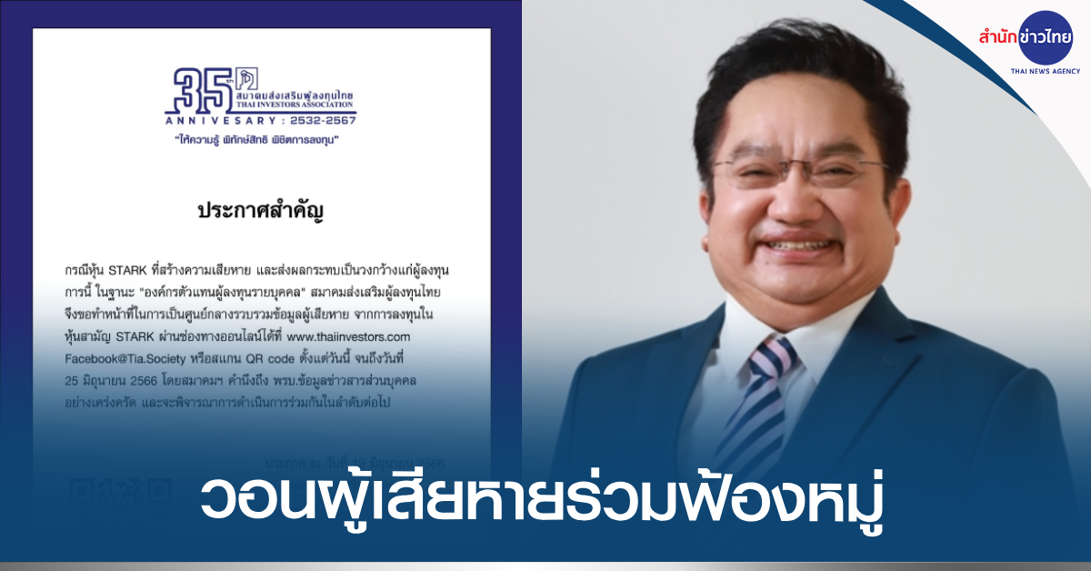 กรุงเทพฯ 21 มิ.ย. – ราคาหุ้น STARK เหลือ 1 สตางค์ระหว่างซื้อขาย วอนผู้เสียหายร่วมฟ้องหมู่ ร่วมกับสมาคมส่งเสริมผู้ลงทุนไทย ลงทะเบียน 19-25 มิ.ย.