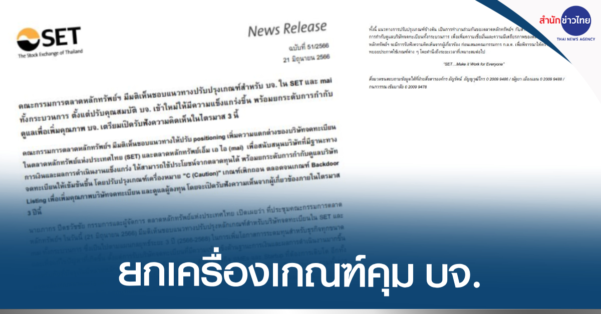 นายภากร ปีตธวัชชัย กรรมการและผู้จัดการ ตลาดหลักทรัพย์แห่งประเทศไทย เปิดเผยว่า ที่ประชุมคณะกรรมการตลาดหลักทรัพย์ฯ ในวันนี้ (21 มิถุนายน 2566) มีมติเห็นชอบแนวทางปรับปรุงหลักเกณฑ์สำหรับบริษัทจดทะเบียนใน SET และ mai ทั้งกระบวนการ ซึ่งเป็นไปตามแผนกลยุทธ์ระยะ 3 ปี (2566-2568) ในการเพิ่มโอกาสการระดมทุนสำหรับธุรกิจทุกขนาด และเพื่อแก้ไขปัญหาที่เกิดขึ้น ตั้งแต่การรับบริษัทจดทะเบียนที่มีความเข้มแข็งด้านฐานะการเงินและผลการดำเนินงานมากขึ้น สอดรับกับที่ปัจจุบันมีตลาดหลักทรัพย์ไลฟ์เอ็กซ์เช้นจ์ (LiVEx) สำหรับธุรกิจ SMEs และ Startup ที่ต้องการเติบโต อีกทั้งสอดคล้องกับขนาดและฐานะการเงินของบริษัทในไทยในปัจจุบัน และแข่งขันได้กับตลาดหลักทรัพย์ต่างประเทศ รวมทั้งการยกระดับการกำกับดูแลบริษัทจดทะเบียนให้เข้มข้นมากขึ้น เพื่อเพิ่มคุณภาพบริษัทจดทะเบียนและการดูแลผู้ลงทุน