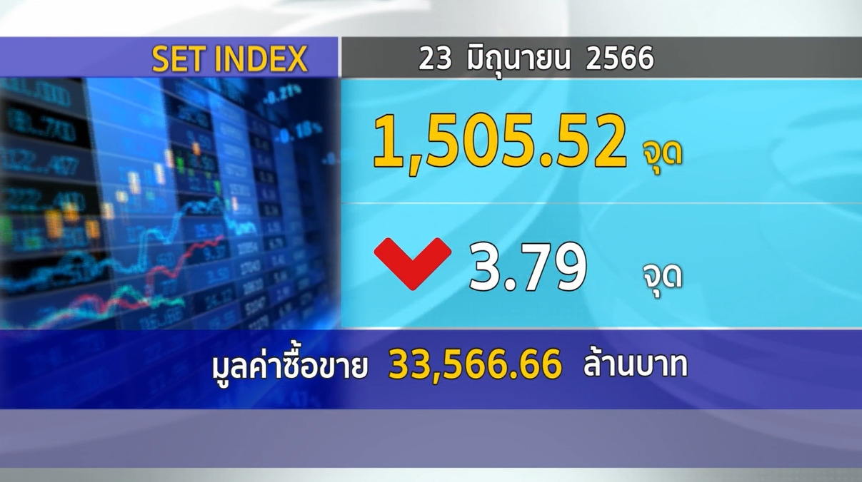 กทม. 23 มิ.ย.-SET ปิดวันนี้ที่ 1,505.52 จุด ลดลง 3.79 จุด (-0.25%) มูลค่าซื้อขาย 33,566.66 ล้านบาท