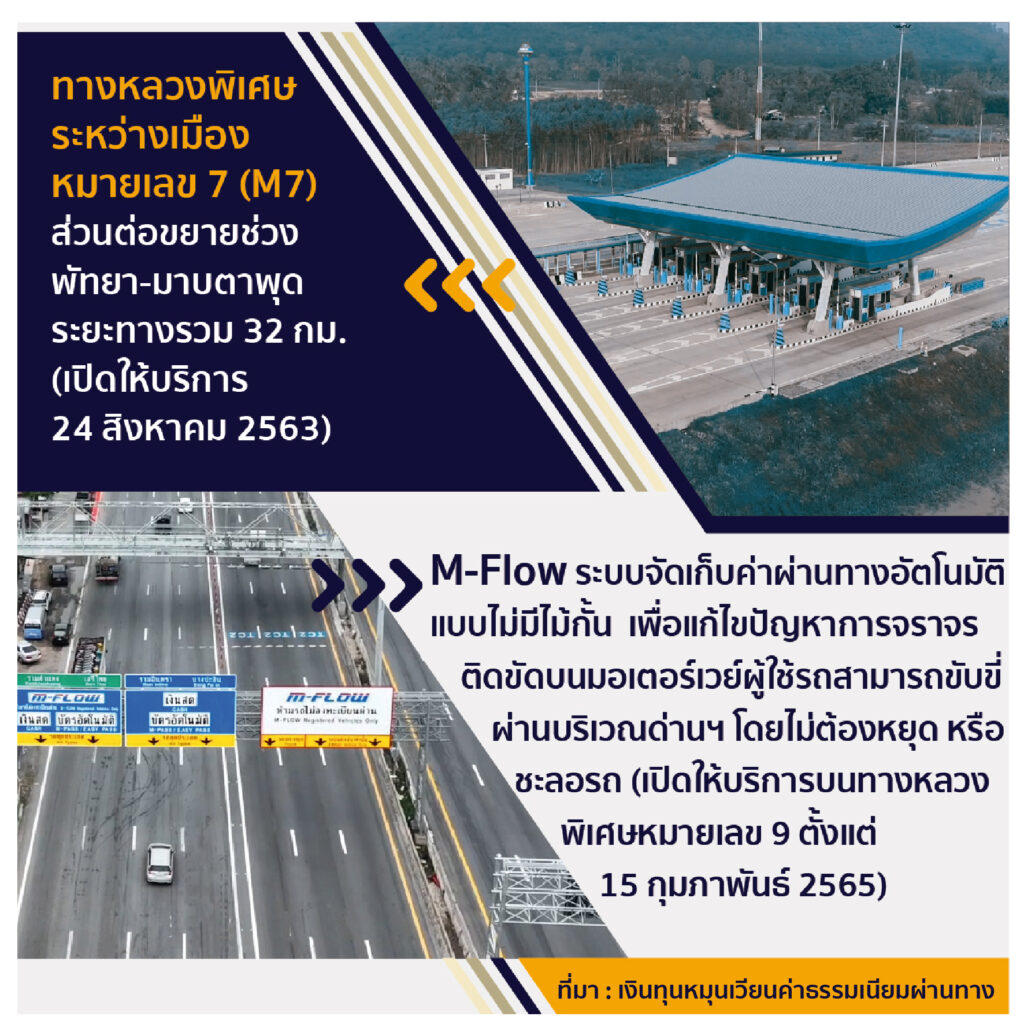 มอเตอร์เวย์ หรือ ทางหลวงพิเศษระหว่างเมืองหมายเลข 7 เป็นทางสายหลักที่ส่งเสริมให้เกิดการพัฒนาพื้นที่และการลงทุนภาคอุตสาหกรรมในบริเวณพื้นที่ภาคตะวันออก (ชลบุรี ฉะเชิงเทรา และระยอง) ซึ่งเมื่อปี 2563 กรมทางหลวงได้เปิดให้บริการมอเตอร์เวย์ ส่วนต่อขยายสาย 7 ช่วงพัทยา-มาบตาพุด ให้เป็นเส้นทางคมนาคมสายใหม่ ซึ่งช่วยลดระยะเวลาเดินทาง เชื่อมต่อเข้าสู่พื้นที่ของโครงการพัฒนาระเบียงเศรษฐกิจพิเศษภาคตะวันออก EEC อีกทั้งยังเป็นโครงการที่เชื่อมต่อโครงข่ายการคมนาคมขนส่งในทุกระบบ ทั้งทางบก ทางน้ำ ทางอากาศ และทางราง