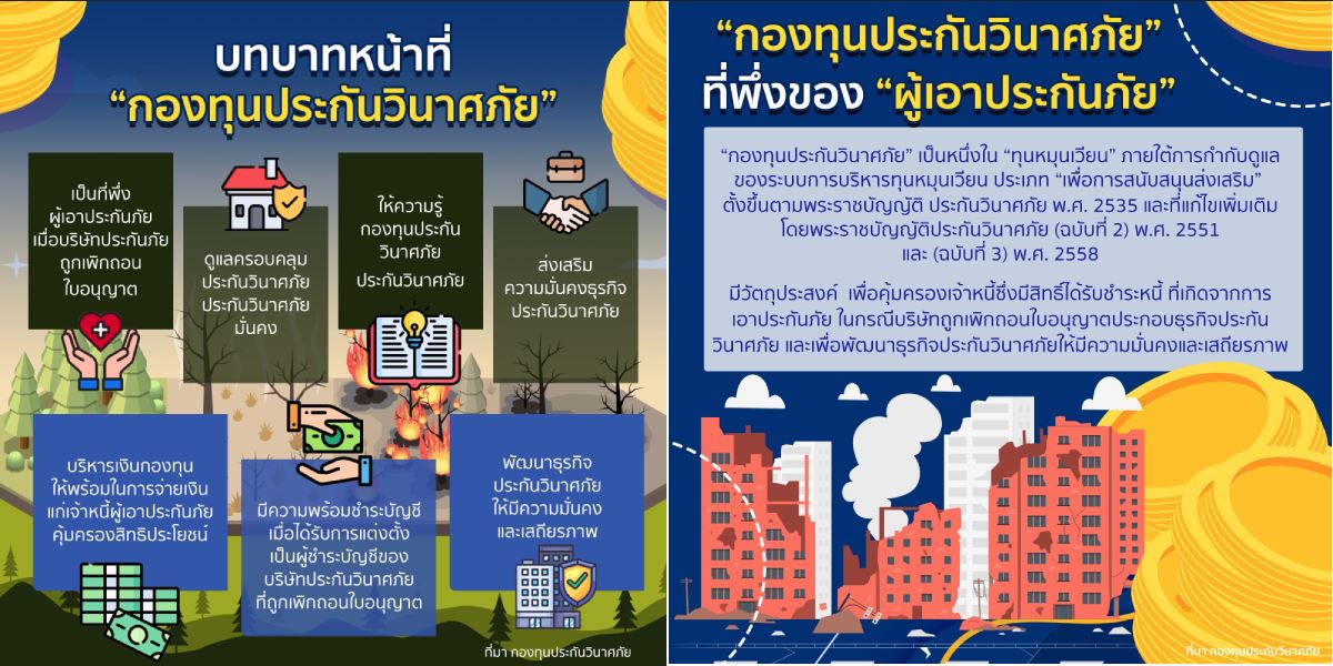 เช่นกรณีที่เกิดขึ้น ก็ได้เห็น “กองทุนประกันวินาศภัย” เข้ามามีบทบาทเป็น “ผู้จ่ายค่าสินไหมทดแทนตามความคุ้มครองแทนบริษัทที่ปิดตัวไป ในวงเงินไม่เกิน 1,000,000 บาท ตามกฎหมาย”