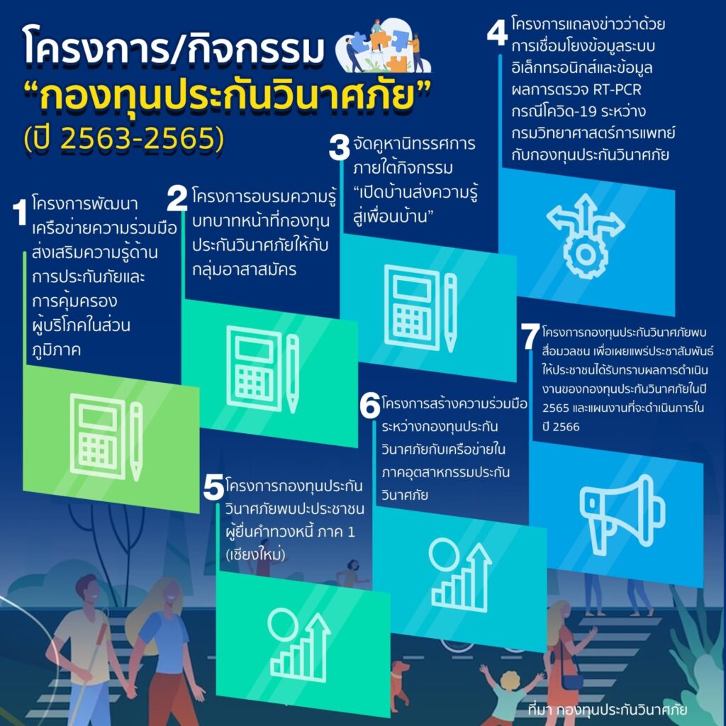 อย่างที่กล่าวไปแล้วว่า “กองทุนประกันวินาศภัย” เป็นที่พึ่งผู้เอาประกันภัย เมื่อบริษัทประกันภัยถูกเพิกถอนใบอนุญาต และอีกหนึ่งในภารกิจสำคัญก็คือ การเผยแพร่ให้ความรู้เกี่ยวกับกองทุนประกันวินาศภัย และการประกันวินาศภัย เพื่อส่งเสริมความมั่นคงของธุรกิจประกันวินาศภัย โดยในช่วง 3 ปีที่ผ่านมา แม้จะมีการแพร่ระบาดของโควิด-19 แต่กองทุนประกันวินาศภัยก็ยังมุ่งมั่นสร้างเครือข่ายและให้ความรู้แก่ประชาชนอย่างต่อเนื่อง ดังนี้