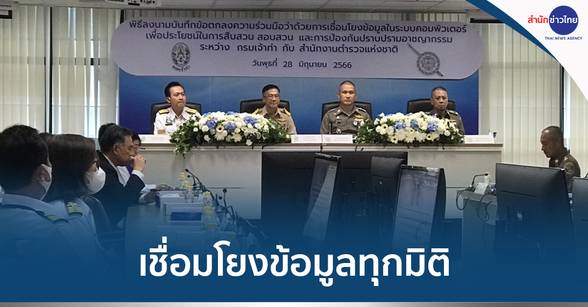 โดยในการบันทึกข้อตกลงความร่วมมือ (MOU) ว่าด้วยการเชื่อมโยงข้อมูลฯ กับสำนักงานตำรวจแห่งชาติ เพื่อเชื่อมโยงแลกเปลี่ยนข้อมูลในระบบฐานข้อมูลของกรมเจ้าท่า ประกอบด้วย ข้อมูลเรือที่ได้มีการจดทะเบียนไว้โดยกรมเจ้าท่า รวมถึงรายละเอียดที่เกี่ยวข้องต่าง ๆ ข้อมูลบุคคลทำการในเรือที่ได้มีการขึ้นทะเบียนไว้ รวมถึงรายละเอียดที่เกี่ยวข้องข้อมูลประกาศนียบัตร และเอกสารประจำตัวบุคคลที่ได้มีการจดทะเบียนไว้กับกรมเจ้าท่าและข้อมูลอื่น ๆ ตามที่กรมเจ้าท่าเห็นควรอนุญาตและเป็นประโยชน์ต่อการดำเนินโครงการเพื่อเพิ่มประสิทธิภาพในการป้องกันและปราบปรามของกองบังคับการปราบปรามได้ในหลายมิติ ทำให้เจ้าหน้าที่ตำรวจสามารถค้นหาข้อมูลได้อย่างรวดเร็ว เพิ่มประสิทธิภาพในการในสืบสวน สอบสวน จับกุมผู้กระทำความผิด ลดภาระงานซ้ำซ้อน และมีระบบประมวลผลข้อมูลขนาดใหญ่เพื่อวิเคราะห์หมายจับ ตรวจสอบบุคคลเฝ้าระวังหรือยานพาหนะเป้าหมาย นอกจากนี้ สามารถสร้างความสัมพันธ์ของข้อมูลที่เป็นประโยชน์ในเชิงการสืบสวนการวิเคราะห์แผนประทุษกรรม หรือการวิเคราะห์ในเชิงสถิติที่เกี่ยวข้องกับอาชญากรรมที่เกิดขึ้นอย่างเป็นระบบต่อไป .-สำนักข่าวไทย