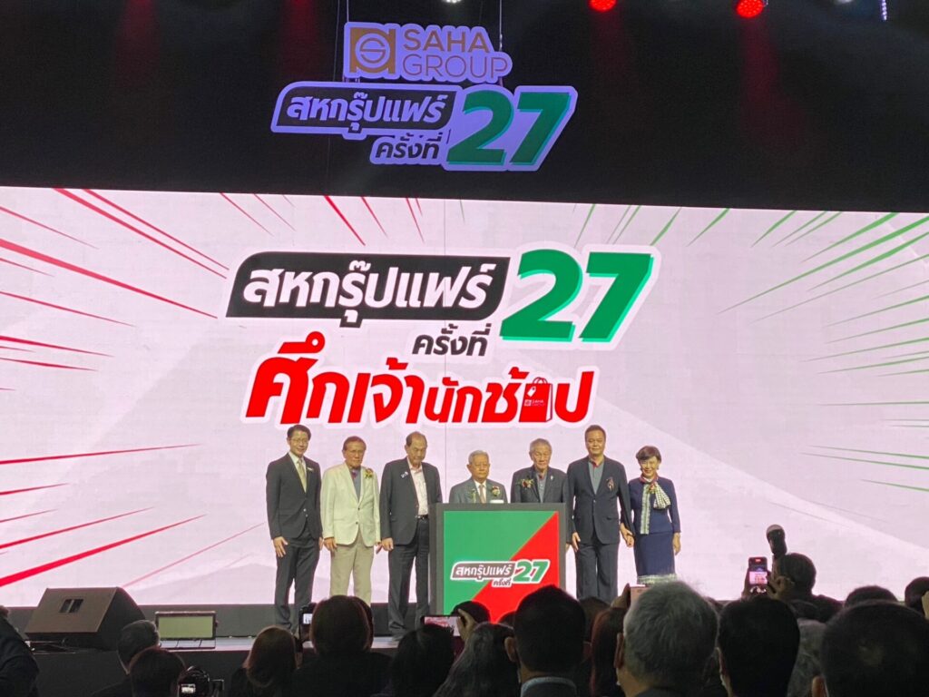 นายธรรมรัตน์ โชควัฒนา กรรมการผู้อำนวยการและประธานกรรมการบริหาร บริษัท ไอ.ซี.ซี. อินเตอร์เนชั่นแนล จำกัด (มหาชน) ในฐานะประธานจัดงานสหกรุ๊ปแฟร์ กล่าวว่า สหกรุ๊ปแฟร์ปีนี้จัดขึ้นเป็นครั้งที่ 27 จัดยิ่งใหญ่กว่าทุกปี โดยมีการจำหน่ายสินค้าราคาพิเศษ จัดแสดงนวัตกรรม และจัดกิจกรรมพิเศษที่ฮอลล์ 98-99 ซึ่งแต่ละแบรนด์ได้นำสินค้ามาจัดโปรโมชันพิเศษ เพื่อลดค่าใช้จ่ายของประชาชน รวมกว่า 1,000 คูหา กว่า 100 บริษัทส่วน พื้นที่จัดแสดงสินค้านวัตกรรม จัดที่ฮอลล์ 100 โดยมีนวัตกรรมมาเปิดตัวมากมาย อาทิ วาโก้เปิดตัวคอลเลกชัน WACOAL FREEDOM อิสรที่ไม่มีนิยาม กางเกงในชายที่ชูความเป็นวาโก้สำหรับทุกคน, AMAZE เปิดตัวโชว์เคสโครงการ A’MAZE GREEN SOCIETY พบผลิตภัณฑ์สร้างสรรค์จากการใช้ผ้าส่วนเกิน ต่อยอดเป็นผลิตภัณฑ์ใหม่ที่เป็นมิตรกับสิ่งแวดล้อม,