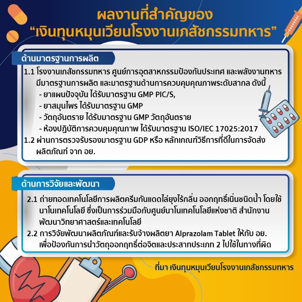 ผลงานที่สำคัญของ “เงินทุนหมุนเวียนโรงงานเภสัชกรรมทหาร” มีดังนี้