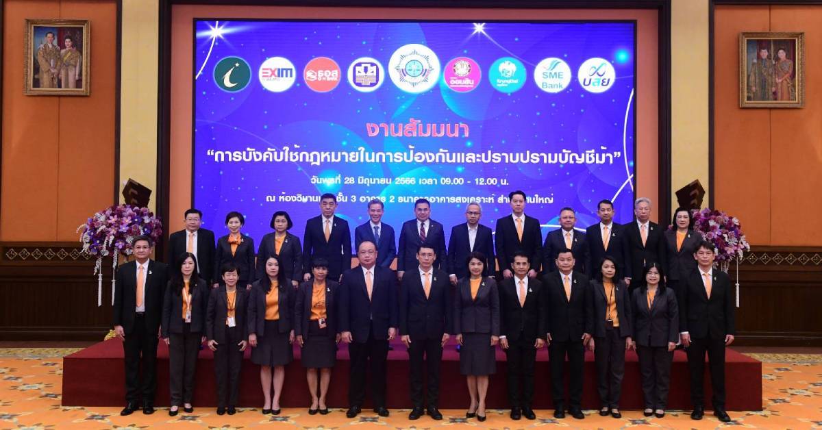 โดยได้รับเกียรติจากนายเทพสุ บวรโชติดารา เลขาธิการคณะกรรมการป้องกันและปราบปรามการฟอกเงิน สำนักงานป้องกันและปราบปรามการฟอกเงิน เป็นวิทยากรบรรยาย ซึ่ง ธอส. ร่วมกับ คณะอนุกรรมการด้านกำกับการปฏิบัติงาน สมาคมสถาบันการเงินของรัฐ จัดงานสัมมนาดังกล่าว เพื่อให้ผู้บริหารและผู้ปฏิบัติงานของสถาบันการเงินของรัฐ ทราบถึงการบังคับใช้กฎหมายในการป้องกันและปราบปรามบัญชีม้า และแนวทางในการดำเนินการกับบุคคลที่มีความเกี่ยวข้องกับความผิดมูลฐาน โดยใช้ผลิตภัณฑ์หรือบริการของธนาคารเป็นช่องทางในการกระทำความผิดด้านการฟอกเงิน ยกระดับความร่วมมือในการสนับสนุนการป้องกันและปราบปรามบัญชีม้าให้เป็นไปอย่างมีประสิทธิภาพ รวดเร็ว เพื่อให้สถาบันการเงินของรัฐเป็นกลไกหลักในการป้องกันมิให้ลูกค้าได้รับผลกระทบและความเสียหายจากภัยทุจริตทางการเงิน อันเป็นส่วนสำคัญในการช่วยลดการก่ออาชญากรรมทางเทคโนโลยีในระดับประเทศ