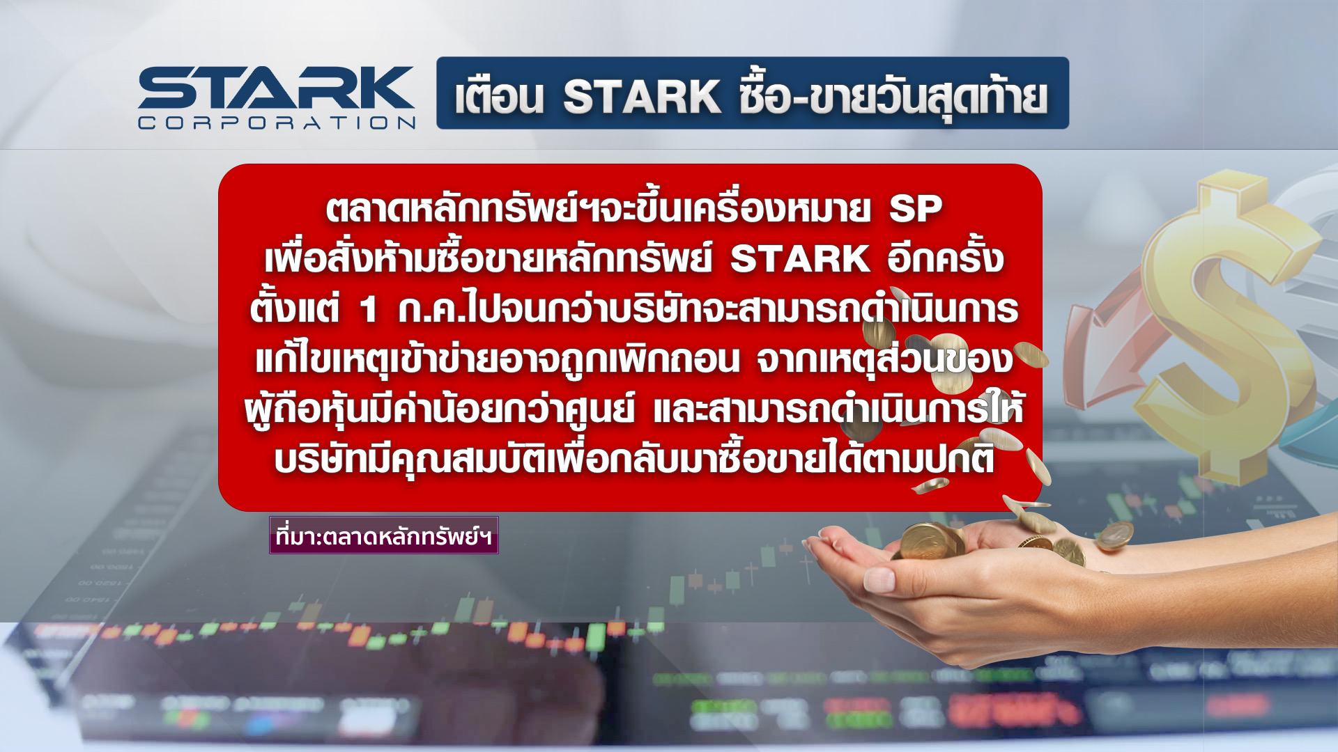กรุงเทพฯ 30 มิ.ย.-ตลาดหลักทรัพย์ฯ แจ้งหุ้น STARK เปิดเทรดวันนี้วันสุดท้าย เตือนนักลงทุน-ผู้ถือหุ้นควรระมัดระวัง จะขึ้น SP ตั้งแต่ 1 ก.ค.2566 เป็นต้นไป