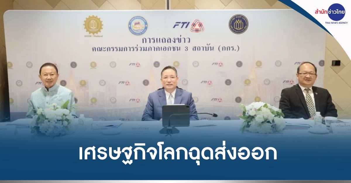 นายผยง ศรีวณิช กรรมการผู้จัดการใหญ่ธนาคารกรุงไทย และประธานสมาคมธนาคารไทย ในฐานะประธานการประชุมคณะกรรมการร่วมภาคเอกชน 3 สถาบัน(กกร.) เปิดเผยว่า ที่ประชุม กกร. ยังคงกรอบประมาณการการเติบโตของเศรษฐกิจไทย (GDP)ปี 2566 ไว้ที่ 3%- 3.5% เนื่องจากเศรษบกิจไทยมีแนวโน้มขยายตัวต่อเนื่อง จากการท่องเที่ยวปรับตัวดีขึ้น โดยคาดว่า จำนวนนักท่องเที่ยวต่างชาติปีนี้จะสูงขึ้นไปถึง 29-30 ล้านคน แต่ทั้งนี้ กกร. ได้ปรับตัวเลขการส่งออกจากเดิม -1% – 0% เป็น – 2% – 0% และปรับเงินเฟ้อจากเดิม 2.7%ถึง 3.2% เป็น 2.2% ถึง2.7% เนื่องจากเศรษฐกิจโลกยังมีแนวโน้มชะลอลงมากในช่วงครึ่งปีหลังของปีนี้ ประกอบกับเงินบาทอ่อนค่า
