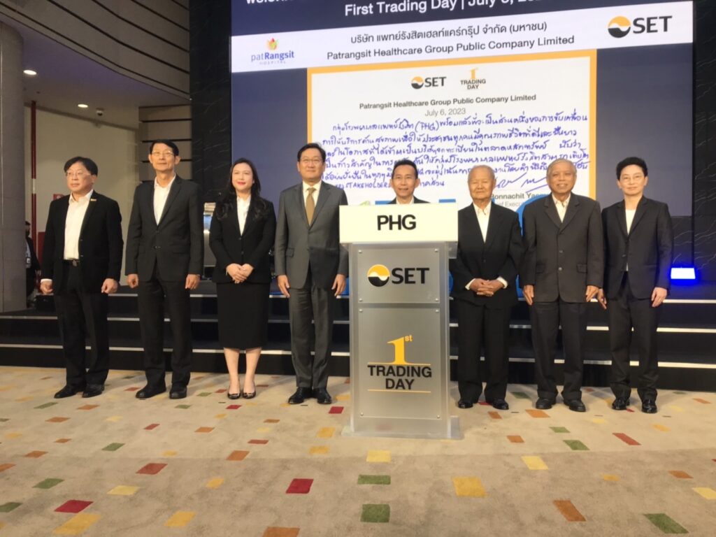 นายภากร ปีตธวัชชัย กรรมการและผู้จัดการตลาดหลักทรัพย์แห่งประเทศไทย เปิดเผยว่า ตลาดหลักทรัพย์ฯ ยินดีต้อนรับ บมจ. แพทย์รังสิตเฮลท์แคร์กรุ๊ป เข้าจดทะเบียนและเริ่มซื้อขายในตลาดหลักทรัพย์ฯ ในกลุ่มบริการ หมวดธุรกิจการแพทย์ โดยใช้ชื่อย่อในการซื้อขายหลักทรัพย์ว่า “PHG” ในวันที่ 6 กรกฎาคม 2566