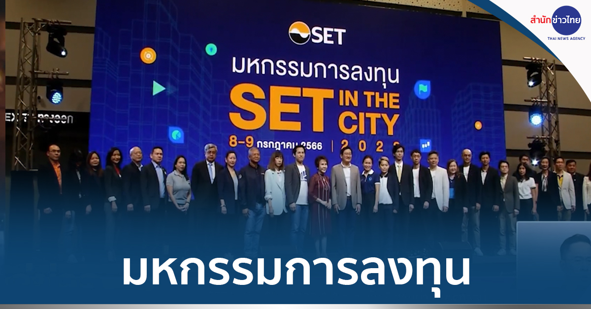 กทม. 8 ก.ค.-ตลาดหลักทรัพย์แห่งประเทศไทย จัดมหกรรมการลงทุน SET in the City 2023 จัดต่อเนื่องมาเป็นปีที่ 19 เพื่อสร้างโอกาสให้ผู้ลงทุนมือใหม่ พร้อม workshop ลงมือปฏิบัติเลือกลงทุนให้เหมาะสมกับเป้าหมาย 8-9 ก.ค. ชั้น 5 สามย่านมิตรทาวน์
