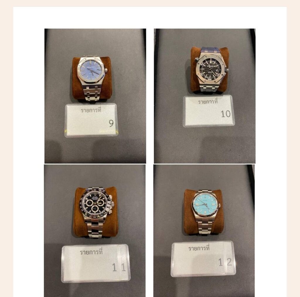 ดังนั้น กรมศุลกากรจึงนำนาฬิกา 13 เรือน มาประกาศขายทอดตลาด ในวันที่ 28 มิถุนายน 2566 โดยเปิดให้ประชาชนที่สนใจเข้าชมของกลางวันที่ 5 กรกฎาคม 2566 และเปิดซองการประมูล วันที่ 6 กรกฎาคม 2566 มีผู้เข้าร่วมการประมูลทั้งสิ้น 18 ราย หลังจากได้รับข้อมูลจากผู้ประมูลว่านาฬิกาที่มีการประมูลจากกรมศุลกากรเป็นสินค้าปลอมเครื่องหมายการค้า กรมศุลกากรจึงได้ดำเนินการตรวจสอบทันที และในวันนี้ได้เชิญเจ้าของสิทธิ์มาหารืออีกครั้ง โดยเจ้าของสิทธิ์แจ้งว่านาฬิกาที่ได้ประมูลทั้งหมด วันที่ 6 กรกฎาคม 2566 เป็นสินค้าปลอมเครื่องหมายการค้า