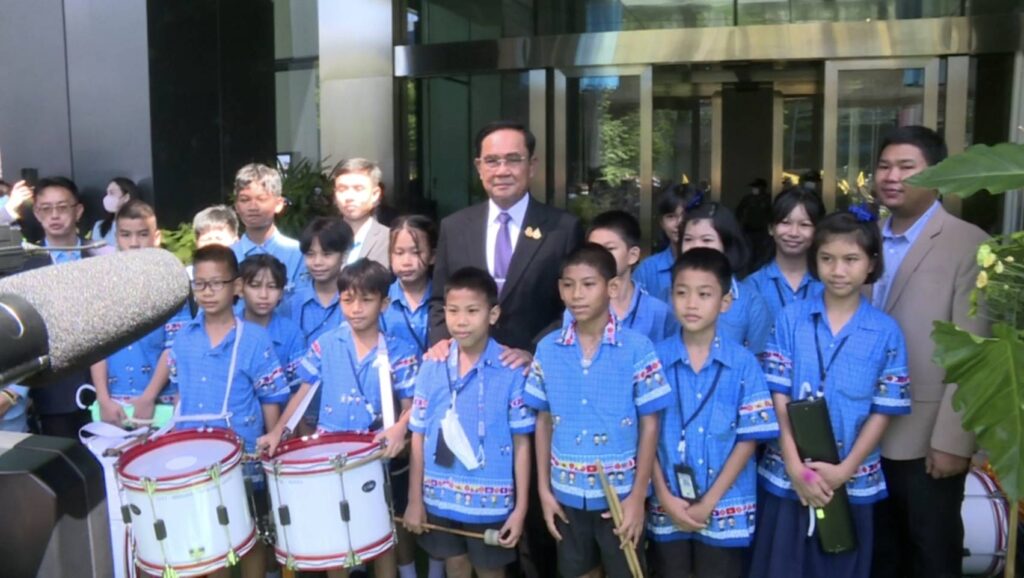 ระหว่างเดินเข้าประตูอาคาร เพื่อร่วมพิธีทำบุญบริเวณโถงชั้น 1 ของอาคารผู้สื่อข่าวได้สอบถามว่า สบายใจขึ้นหรือไม่ภายหลังประกาศวางมือทางการเมืองพล.อ.ประยุทธ์ เพียงแค่ยิ้มและพยักหน้าให้แทนการตอบคำถาม