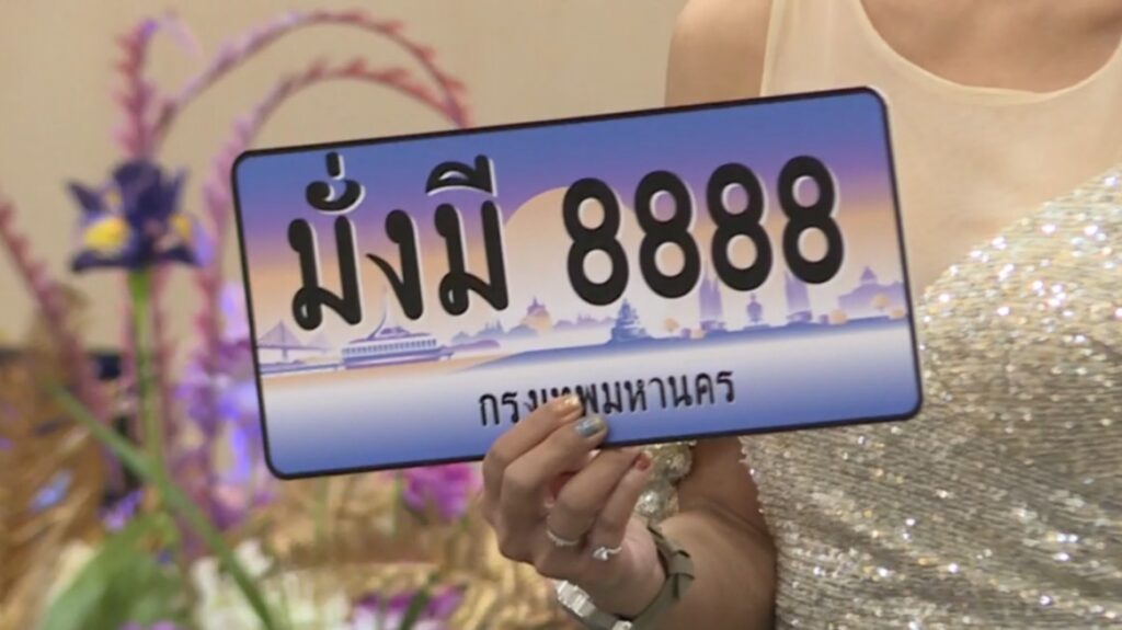 ผู้ชนะการประมูลจะได้ครอบครองป้ายทะเบียนรถลักษณะพิเศษที่ใช้เทคโนโลยีการพิมพ์แผ่นป้ายแตกต่างจากป้ายทะเบียนปกติ ตัวแผ่นป้ายไม่มีรอยดุลและไม่มีขอบ ภาพพื้นหลังมีลวดลายกราฟิก ซึ่งผู้ประมูลสามารถโอนเปลี่ยนแปลงกรรมสิทธิ์ให้ผู้อื่นหรือโอนเป็นมรดกได้ และนำไปใช้กับรถที่จดทะเบียนแล้วได้เช่นเดียวกัน