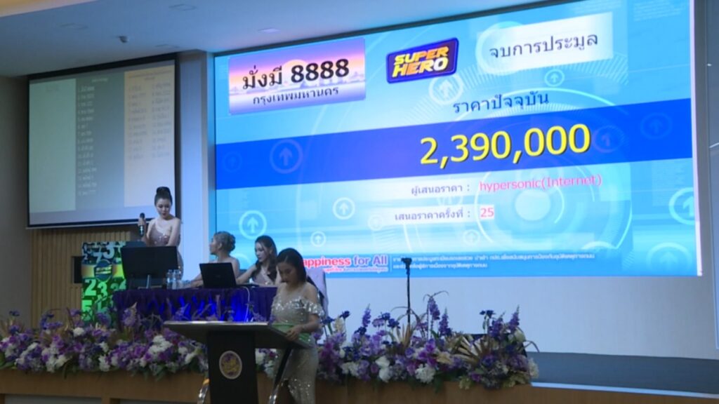 โดยผลการประมูลหมายเลขที่น่าสนใจ ครั้งนี้ อาทิ มั่งมี 8888 จบการประมูลที่ 2,390,000 บาท, รวย 3333 จบการประมูลที่ 2,900,000 บาท, รวย 222 จบการประมูลที่ 2,000,000 บาท, เฮง 789 จบการประมูลที่ 1,730,000 บาท, เก่ง 9999 จบการประมูลที่ 2,550,000 บาท, เจ้าสัว 1 จบการประมูลที่ 2,900,000 บาท เป็นต้น