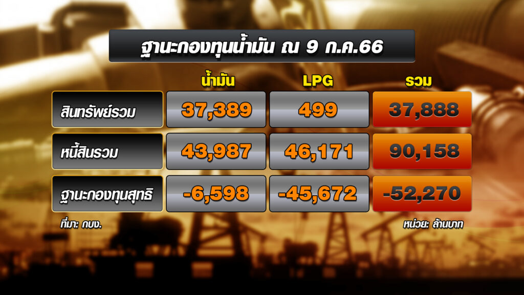 ผู้สื่อข่าวรายงานว่าวันพรุ่งนี้(18 ก.ค.) สำนักงานกองทุนน้ำมันเชื้อเพลิง (สกนช.)แจ้งแถลงข่าวการพิจารณาของ คณะกรรมการบริหารกองทุนน้ำมันเชื้อเพลิง (กบน. ) จะตัดสินใจบริหารกองทุนฯอย่างไร หลังจากที่รัฐบาลไม่ต่ออายุการลดภาษีสรรพาสิตดีเซล 5 บาท/ลิตร สิ้นสุด 20 ก.ค.นี้ ท่ามกลางกองทุนน้ำมันยังติดลบ โดยฐานะกองทุนน้ำมันฯ ณ วันที่ 9 ก.ค.2566 ยังติดลบ 52,270 ล้านบาท แบ่งเป็น บัญชีน้ำมัน ติดลบ 6,598 ล้านบาท และบัญชี LPG ติดลบ 45,672 ล้านบาท