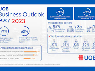 รายงาน UOB Business Outlook Study 2023 (SME& Large Enterprises) ที่จัดทำโดยธนาคารยูโอบีเผยธุรกิจเอสเอ็มอีและบรรษัทขนาดใหญ่เชื่อมั่นเศรษฐกิจไทยฟื้นตัว รายงานสำรวจความเชื่อมั่นทางธุรกิจ เทรนด์ธุรกิจและกลยุทธ์หลักที่บริษัทชั้นนำของประเทศไทยใช้เป็นแนวทางหลักในการขับเคลื่อนการดำเนินธุรกิจให้เติบโตหลังการแพร่ระบาดของโรคโควิด-19