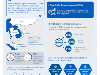 ผลสำรวจพบว่าบริษัทพร้อมนำเทคโนโลยีดิจิทัลมาใช้ในการดำเนินธุรกิจ และส่งเสริมกลยุทธ์ด้านความยั่งยืนเพื่อเพิ่มประสิทธิภาพในการบริหารงาน และปรับภาพลักษณ์ขององค์กรให้ดีขึ้นมากกว่า 9 ใน 10 ของธุรกิจหรือ ร้อยละ92 นำเทคโนโลยีดิจิทัลมาใช้ในธุรกิจอย่างน้อย 1 หน่วยงานซึ่งมากกว่าค่าเฉลี่ยของภูมิภาคเอเชีย (ร้อยละ 87) และอาเซียน (ร้อยละ 86) โดยธุรกิจที่นำเทคโนโลยีดิจิทัลมาใช้สามารถเข้าถึงลูกค้าได้มากขึ้น และช่วยให้การบริการลูกค้าเป็นไปอย่างมีประสิทธิภาพยิ่งขึ้น ธุรกิจส่วนใหญ่โดยเฉพาะผู้ประกอบการเอสเอ็มอีนำเทคโนโลยีดิจิทัลมาปรับใช้ในกระบวนการธุรกิจ โดยธุรกิจประมาณร้อยละ 60 มองหาคำแนะนำจากธนาคารในการนำเทคโนโลยีดิจิทัลมาใช้เพื่อเพิ่มประสิทธิภาพในการทำงาน และทำให้การประสานงานกับหน่วยงานภาครัฐ และเชื่อมต่อกับบุคคลที่สามเป็นไปอย่างสะดวกมากขึ้น
