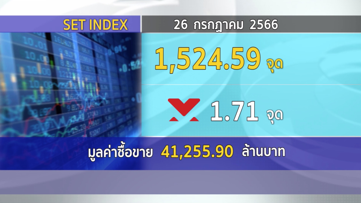 กทม. 26 ก.ค.- SET ปิดวันนี้ที่ 1,524.59 จุด ลดลง 1.71 จุด (-0.11%) มูลค่าซื้อขาย 41,255.90 ล้านบาท