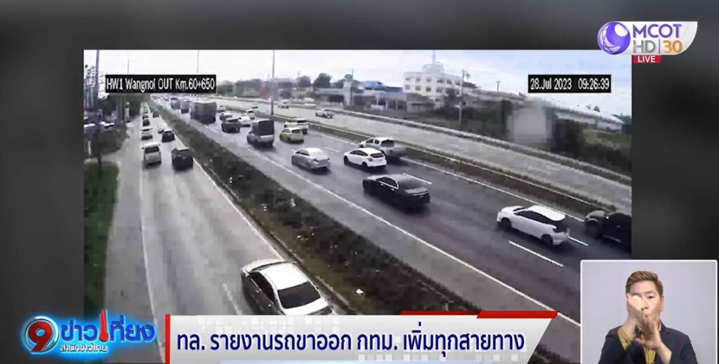 ด้านกรมทางหลวง รายงานข้อมูลปริมาณจราจรเข้า-ออก กทม. เมื่อวานนี้ (27 ก.ค.) ในภาพรวมรถขาออกจาก กทม. มีปริมาณจราจรเพิ่มขึ้นกว่าช่วงเวลาปกติในทุกสายทาง 24.5% เส้นทางหลัก อาทิ ถนนพหลโยธิน ช่วงวังน้อย เพิ่มขึ้น 52.9%, ถนนสายเอเชีย ช่วงบางปะอิน เพิ่มขึ้น 38.5% และคาดการณ์ในวันนี้จะยังคงมีรถทยอยเดินทางออกอย่างต่อเนื่องในทุกสายทาง