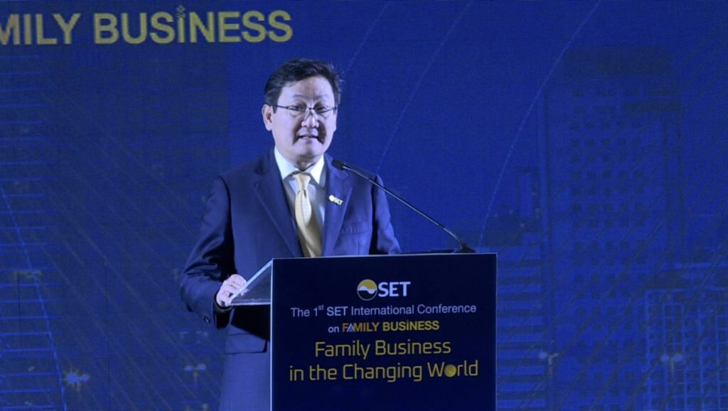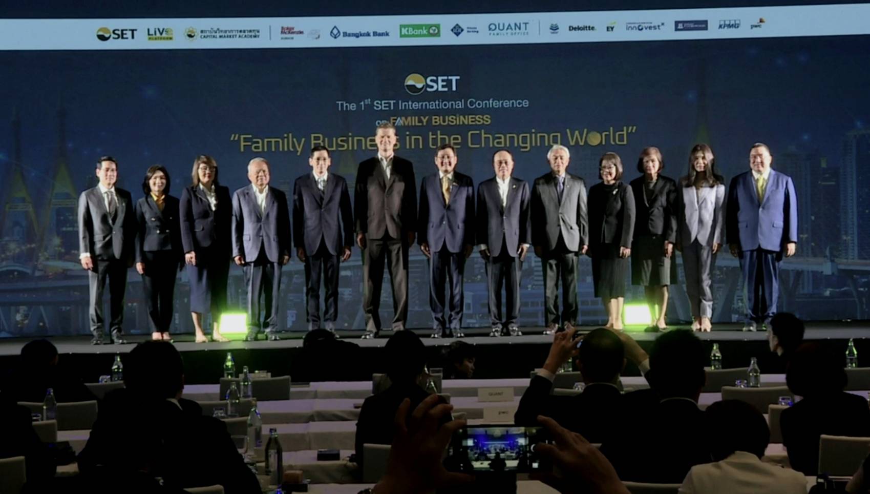 นายภากร ปีตธวัชชัย กรรมการและผู้จัดการ ตลท. กล่าวเปิดงานว่า ธุรกิจครอบครัว มีความสำคัญต่อเศรษฐกิจอย่างมาก แต่การส่งผ่านธุรกิจครอบครัวจากรุ่นสู่รุ่นไม่ใช่เรื่องง่าย จากสถิติพบว่า 90% ของธุรกิจครอบครัว ไม่สามารถส่งผ่านไปได้เกินรุ่นที่ 3 นอกจากนี้ บริษัทธุรกิจครอบครัวจะต้องเผชิญความท้าทายจากปัจจัยยภายนอกทีมีความเปลี่ยนแปลงอย่างรวดเร็ว และปัจจัยสำคัญที่ทำให้ธุรกิจครอบครัวเติบโตได้อย่างมั่นคงในอนาคต ส่วนใหญ่จะมาจากปัจจัยภายใน ไม่ว่าจะเป็นการวางแผนการสืบทอด การจัด๕รงสร้างหรือการสื่อสารสร้างความเข้าระกว่างสมาชิกในครอบครัวในการบริหารธุรกิจ และบริหารความมั่งคั่งของครอบครัว รวมถึงการให้ความสำคัญกับประเด็นในด้าน ESG เช่นเดียวกับธุรกิจอื่นๆ ด้วย การจัดงาน “The 1st SET International Conference on Family Business” ซึ่งจัดขึ้นเป็นครั้งแรก ภายใต้แนวคิด “Family Business in the Changing World” เป็นการเน้นย้ำให้ทุกภาคส่วนเห็นความสำคัญธุรกิจครอบครัว ช่วยสนับสนุน สร้างกลไก รวมถึงสภาพแวดล้อมที่เหมาะสมให้ธุรกิจครอบครัวไทย และภูมิภาค มีความเข้มแข็ง เติบโตเป็นกำลังหลักของเศรษฐกิจไทย เชื่อว่าการจัดงานในครั้งนี้จะนำไปสู่ความร่วมมือกันในทุกภาคส่วน เพื่อการพัฒนาธุรกิจครอบครัวเข้มแข็งเติบโตอย่างยั่งยืนตลอดไป