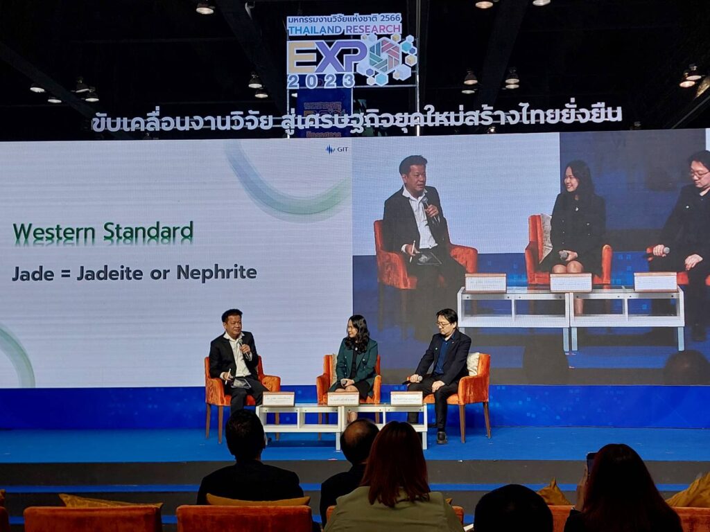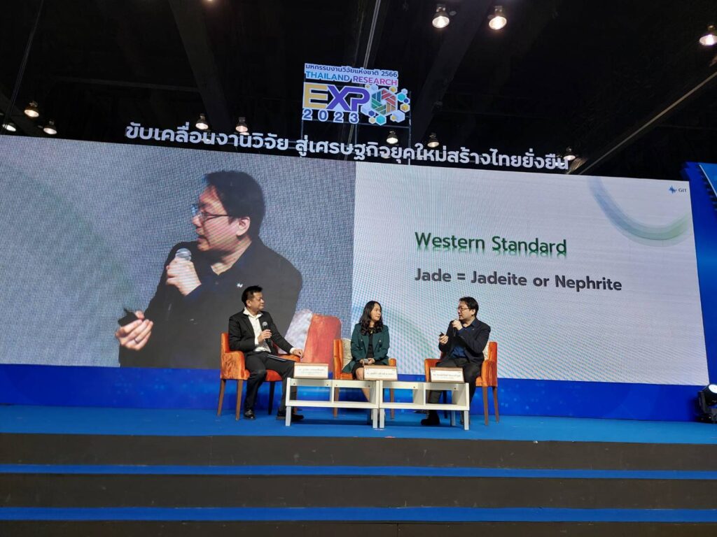 ทั้งนี้ ภายในงานดังกล่าวสถาบันได้เปิดเวทีเสวนานำเสนอเรื่อง “Gem Exploration the Series: the attraction of jade ท่องโลกอัญมณี เดอะซีรีย์: มนต์เสน่ห์หยก” เพื่อถ่ายทอดองค์ความรู้เรื่องราวของหยกในโลกของแห่งอัญมณีและเครื่องประดับ ซึ่งได้รวบรวมคุณสมบัติต่างๆ ของหยก ตลอดจนเทคนิคการเลือกซื้อหยก อัญมณีเลียนแบบหยกชนิดต่างๆ อีกทั้งยังได้นำเสนอผลงานการวิจัยเพื่อหาข้อบ่งชี้ทางภูมิศาสตร์ของหยก รวมถึงมาตรฐานการตรวจสอบหยก เพื่อให้ผู้เข้าร่วมงาน ที่มีความสนใจในหยก ได้มีความรู้ความเข้าใจ และสามารถเลือกซื้อหยกได้อย่างมั่นใจ อีกทั้งสามารถนำไปใช้ประโยชน์ได้จริงในเชิงพาณิชย์ เพื่อสนับสนุนให้ประเทศไทยเป็นศูนย์กลางการผลิตและการค้าอัญมณีและเครื่องประดับโลก”