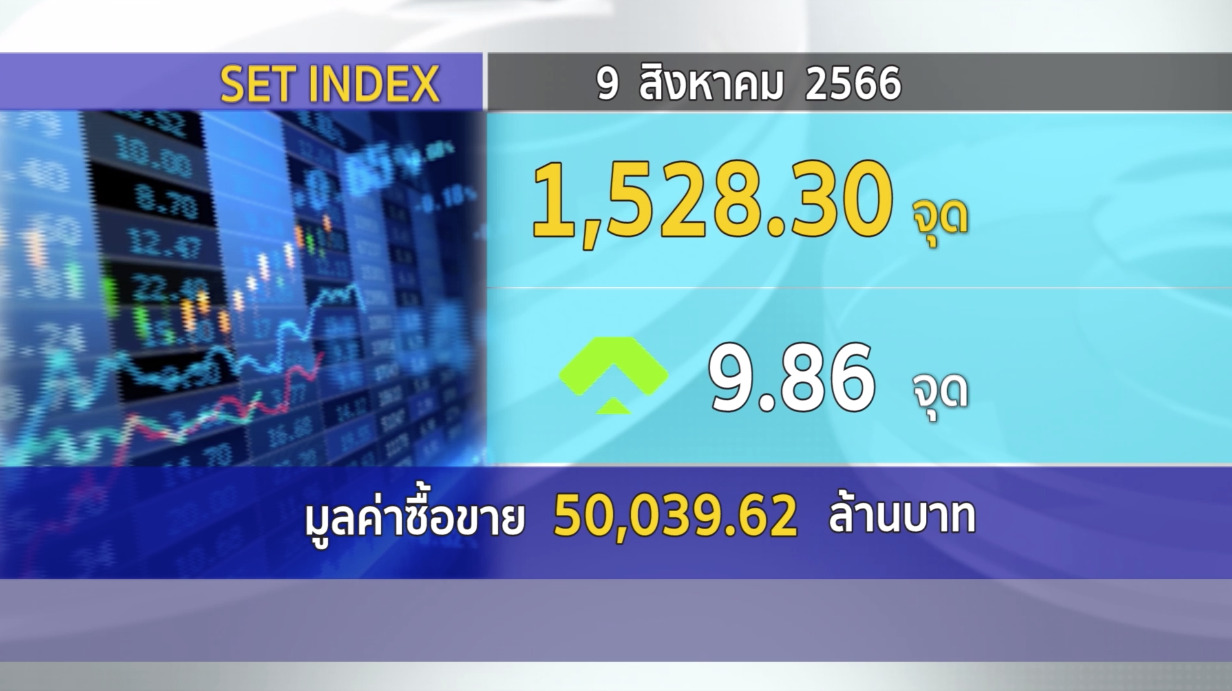กทม. 9 ส.ค.- SET ปิดวันนี้ที่ 1,528.30 จุด เพิ่มขึ้น 9.86 จุด (+0.65%) มูลค่าการซื้อขาย 50,039.62 ล้านบาท