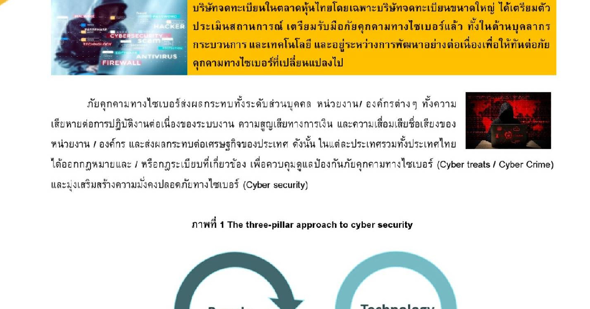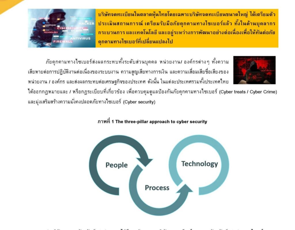 บริษัทจดทะเบียนปฏิบัติตามแนวตามแนวคิด 3 เสาหลักด้านความมั่งคงปลอดภัยทางไซเบอร์ สรุปได้ดังนี้