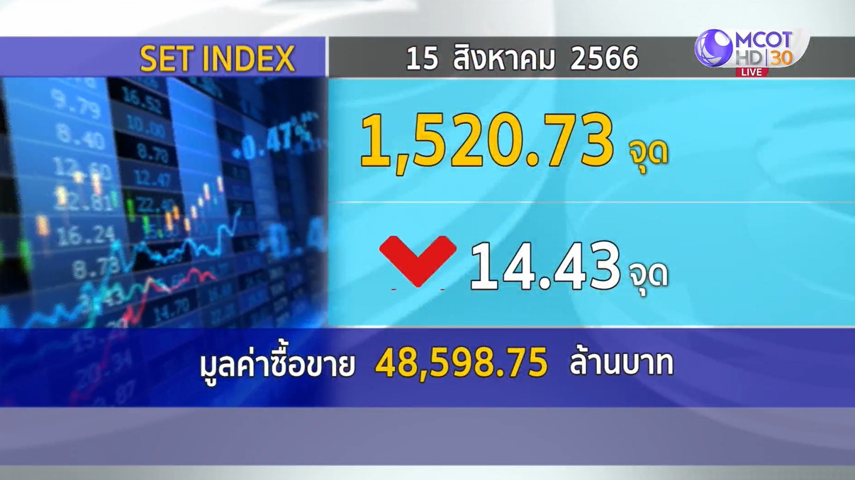 กทม. 15 ส.ค.-SET ปิดวันนี้ที่ 1,520.73 จุด ลดลง 14.43 จุด (-0.94%) มูลค่าซื้อขาย 48,598.75 ล้านบาท