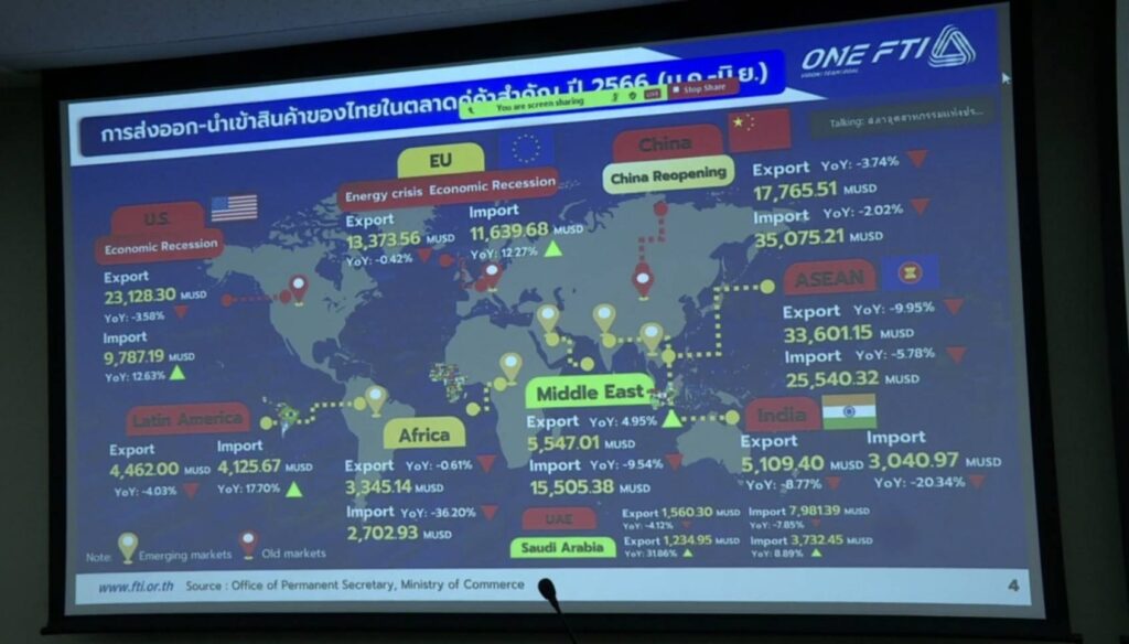 3) ขอให้ใช้กลไกของทูตพาณิชย์ในการเจรจาเร่งจัดทำความตกลงการค้าเสรี (FTA) และลดปัญหาทั้งอุปสรรคทางการค้าที่ไม่ใช่ภาษี (Non-Tariff Barriers: NTBs) และมาตรการทางการค้าที่ไม่ใช่ภาษี(Non-Tariff Measures: NTMs) รวมทั้งจัดกิจกรรมส่งเสริมการค้าแบบมุ่งเป้าไปยังกลุ่มประเทศที่มีศักยภาพ เช่น กลุ่ม GCC, ลาตินอเมริกา, เอเชียใต้ เป็นต้น เพื่อช่วยขยายโอกาสทางการค้าและสนับสนุนภาคการส่งออก