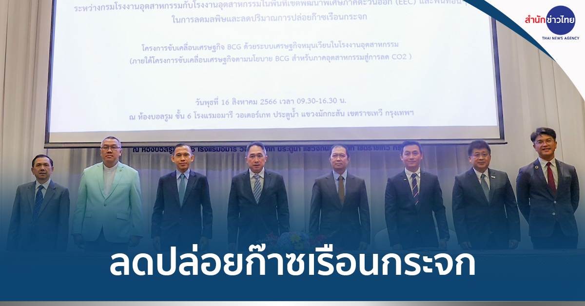 สำหรับการการลงนามบันทึกข้อตกลงในครั้งนี้ เป็นการสร้างความร่วมมือในการลดมลภาวะทางอากาศ และลดปริมาณการปล่อยก๊าซเรือนกระจกจากโรงงานอุตสาหกรรม ตามนโยบายเพื่อสร้างความร่วมมือและส่งเสริมให้โรงงานอุตสาหกรรมในพื้นที่ EEC และพื้นที่อื่นๆ การจัดเก็บ รวบรวม หรือตรวจวัดข้อมูลและจัดทำรายงานการปล่อยก๊าซเรือนกระจก (Measurement and Reporting) เพื่อผลักดันการดำเนินการลดมลภาวะทางอากาศ (Air Pollution Control) และลดปริมาณการปล่อยก๊าซเรือนกระจกจากภาคอุตสาหกรรมให้บรรลุเป้าหมายมุ่งสู่เป้าหมายความเป็นกลางทางคาร์บอน (Carbon Neutrality) ภายในปี 2050 และการปล่อยก๊าซเรือนกระจกสุทธิเป็นศูนย์ (Net Zero GHG Emission) ภายในปี 2065 โดยมีกรอบและแนวทางความร่วมมือ คือ แลกเปลี่ยนข้อมูลด้านเทคโนโลยีหรือนวัตกรรมในการลดการปล่อยก๊าซเรือนกระจกจากภาคอุตสาหกรรม ส่งเสริมให้บุคลากรได้แลกเปลี่ยนข้อมูลและเรียนรู้เทคโนโลยีใหม่ จัดกิจกรรม/อบรม/สัมมนาที่มีส่วนสนับสนุนการดำเนินงาน และให้คำปรึกษาทางวิชาการหรือการบริหารจัดการเพื่อสนับสนุนให้การดำเนินงานของหน่วยงานทุกฝ่าย .-สำนักข่าวไทย