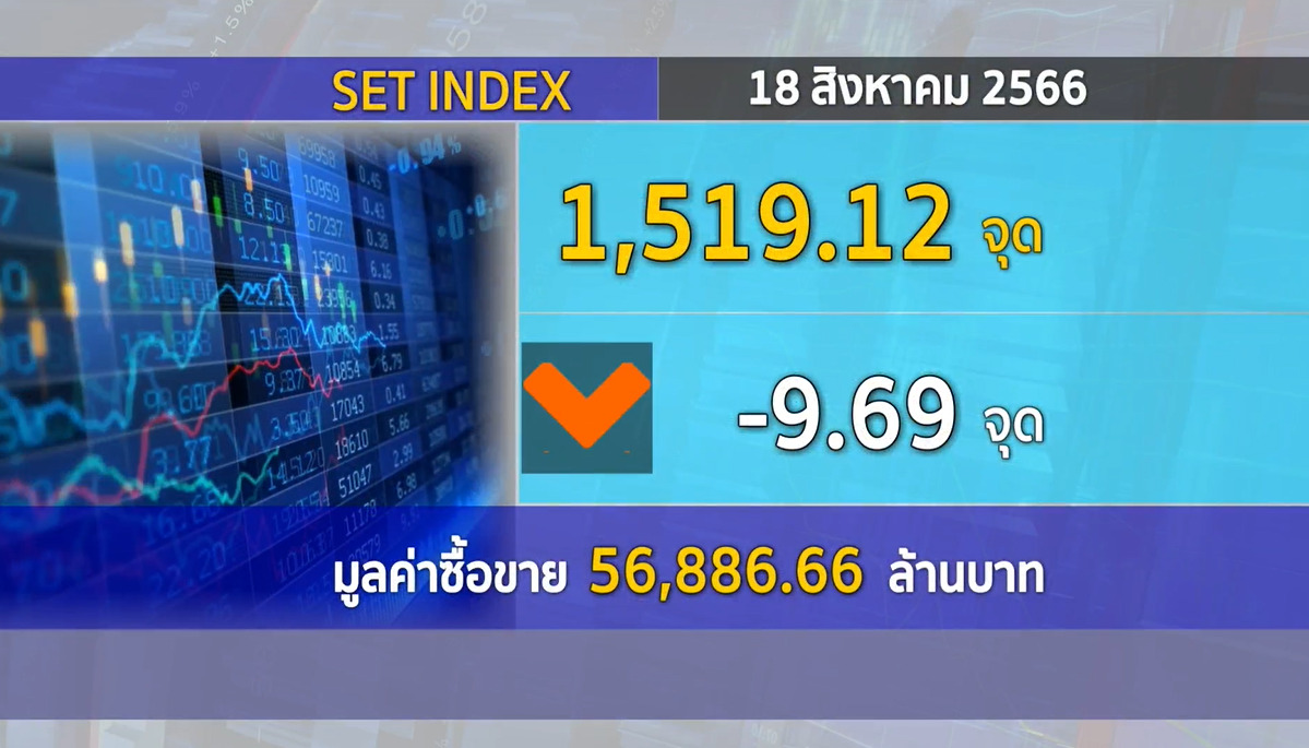 กทม. 18 ส.ค.-SET ปิดวันนี้ที่ 1,519.12 จุด ลดลง 9.69 จุด (-0.63%) มูลค่าซื้อขาย 56,886.66 ล้านบาท
