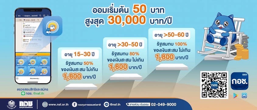 นอกจากนี้ สมาชิก กอช. ยังสามารถนำเงินออมในแต่ละปีไปลดหย่อนภาษีประจำปีได้ สูงสุดไม่เกิน 30,000 บาท/ปี รัฐบาลขอเชิญชวนประชาชนผู้สนใจสมัครเป็นสมาชิก กอช. เพื่อมีเงินออมไว้ใช้ระยะยาว โดยสามารถศึกษาข้อมูลเพิ่มเติมได้ที่เว็บไซต์ www.nsf.or.th, แอปพลิเคชัน กอช. หรือ ไลน์ กอช. @nsf.th. – สำนักข่าวไทย