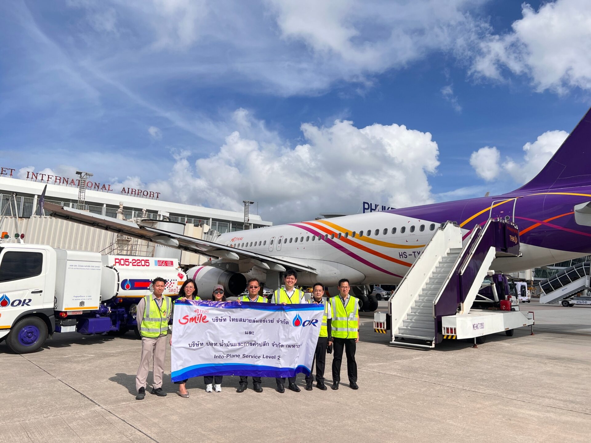 นายชัยพฤฒิ วัชรีคุปต์ ผู้จัดการฝ่ายตลาดอากาศยานและเรือขนส่ง บริษัท ปตท. น้ำมันและการค้าปลีก จำกัด(มหาชน) หรือ โออาร์ เปิดเผยว่า โออาร์ ได้รับความร่วมมือและการสนับสนุนจาก บริษัท การบินไทย จำกัด (มหาชน) ในการพัฒนาทักษะความชำนาญให้บุคลากรของโออาร์ ในการเติมน้ำมันในรูปแบบ IATA Into-Plane Fueling Service Level 2 และได้เริ่มดำเนินการเติมน้ำมันสายการบินไทยสมายล์ แอร์เวย์ ซึ่งเป็นเที่ยวบินในประเทศเส้นทางกรุงเทพ-ภูเก็ต ซึ่งใช้เครื่องบินประเภท AIRBUS A320 เป็นเที่ยวบินปฐมฤกษ์ ณ ท่าอากาศยานภูเก็ต เมื่อเดือนกรกฎาคม 2566 ที่ผ่านมา