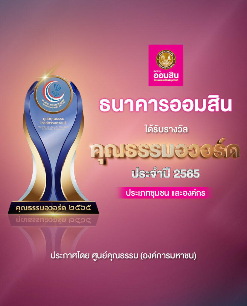 นอกจากนี้ ธนาคารฯ ยังได้รับรางวัลคุณธรรมอวอร์ด ปี 2565 ประเภทชุมชนและองค์กร Moral Awards 2022 จากศูนย์คุณธรรม (องค์การมหาชน) กระทรวงวัฒนธรรม ด้วยการเป็นองค์กรที่มีบทบาทด้านคุณธรรมเป็นที่ประจักษ์แก่สังคม ยึดมั่นในค่านิยมการบริหารจัดการตามหลักธรรมาภิบาล และปฏิบัติตนตั้งมั่นในคุณธรรม จริยธรรม มีความซื่อสัตย์สุจริต และเป็นแบบอย่างที่ดีแก่สังคมและเยาวชนไทย สอดคล้องกับภารกิจของธนาคารออมสินที่ขับเคลื่อนองค์กรสู่ความยั่งยืน มีความรับผิดชอบต่อสังคมและสิ่งแวดล้อม ด้วยนโยบายขับเคลื่อนแนวทาง Social Mission Integration สู่การเป็นธนาคารเพื่อสังคมเต็มรูปแบบ และพัฒนาองค์กรให้เติบโตอย่างยั่งยืน.-สำนักข่าวไทย