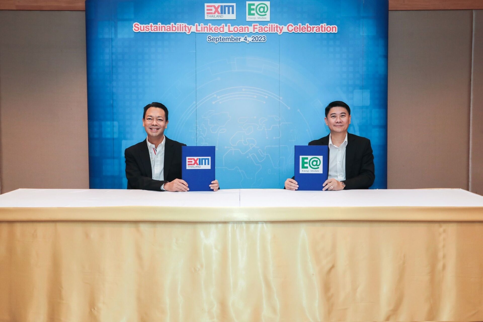 นายรักษ์ วรกิจโภคาทร กรรมการผู้จัดการ ธนาคารเพื่อการส่งออกและนำเข้าแห่งประเทศไทย (EXIM BANK) ลงนามร่วมกับนายอมร ทรัพย์ทวีกุล รองประธานเจ้าหน้าที่บริหาร บริษัท พลังงานบริสุทธิ์ จำกัด (มหาชน) (EA) ในการสนับสนุนสินเชื่อที่เชื่อมโยงกับการดำเนินงานด้านความยั่งยืน (Sustainability Linked Loan : SLL) ของ EXIM BANK จำนวน 500 ล้านบาท เพื่อสนับสนุนการผลิตแบตเตอรี่สำหรับของ EA ในอำเภอบางปะกง จังหวัดฉะเชิงเทรา จากเดิมผลิตได้ 1 กิกะวัตต์ต่อชั่วโมง เป็น 4 กิกะวัตต์ต่อชั่วโมง