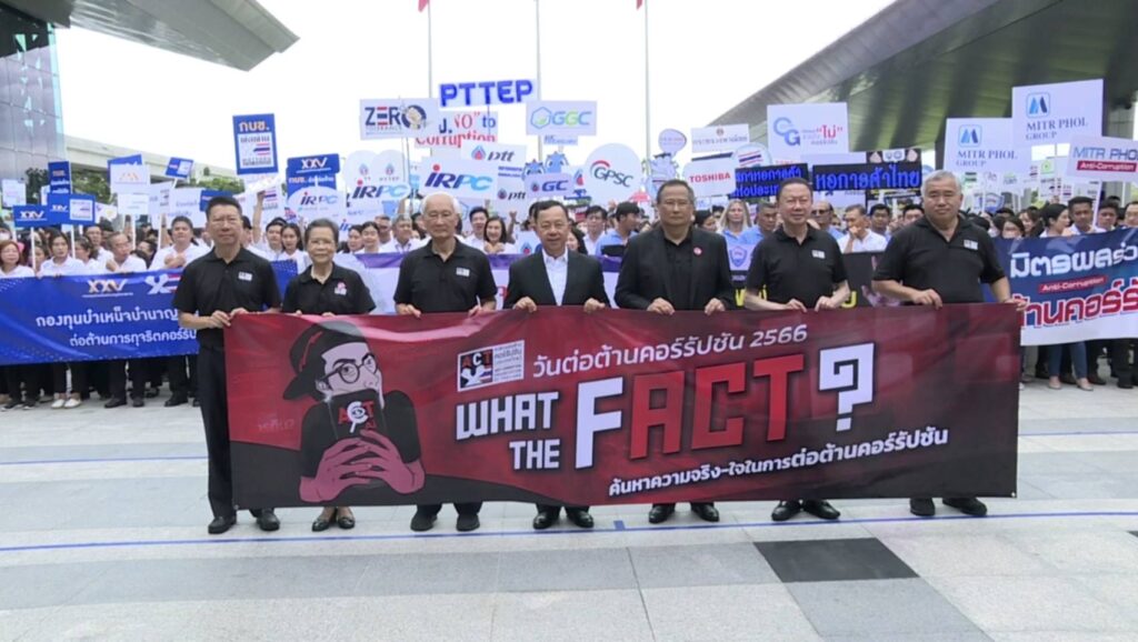 องค์กรต่อต้านคอร์รัปชัน (ประเทศไทย) จัดงาน “วันต่อต้านคอร์รัปชัน 2566” วันที่ 6 ก.ย. ณ สถานีกลางกรุงเทพอภิวัฒน์ (บางซื่อ) รวมพลังคนไทยกว่า 3,000 คน ร่วมต่อต้านคอร์รัปชัน ภายใต้แนวคิด WHAT THE FACT ? “ค้นหาความจริง-ใจในการต่อต้านคอร์รัปชัน” เพื่อกระตุ้นให้ประชาชนมีส่วนร่วมในการตรวจสอบการทุจริตได้อย่างง่ายดาย โดยมีประชาชนและองค์กรต่าง ๆ กว่า 3,000 คน ร่วมเดินขบวนพาเพรดแสดงพลังต่อต้านคอร์รัปชัน รวมทั้งบมจ. อสมท ในฐานะหน่วยงานสื่อสารมวลชนที่ให้ความสำคัญกับการต่อต้านคอร์รัปชัน ตามนโยบาย “อสมท โปร่งใส่ ห่างไกลคอร์รัปชัน ทุกคนต้องช่วยกัน ร่วมสร้างสรรค์ความยั่งยืน” และเป็นสมาชิกแนวร่วมปฏิบัติของภาคเอกชนไทย ในการต่อต้านการทุจริต (CAC) ได้ร่วมแสดงพลังต่อต้านคอร์รัปชัน นำโดยนายสุวิทย์ ทรัพย์มหาอุดม ผู้ช่วยกรรมการผู้อำนวยการใหญ่ สำนักทรัพยากรมนุษย์ พร้อมด้วยพนักงาน อสมท ร่วมเดินขบวนพาเหรด ภายใต้แนวคิด”ชัวร์ก่อนแชร์”