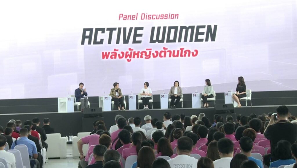 ภายในงานยังมีเวทีเสวนาพลังหญิงต้านโกง “ACTIVE WOMEN” เพื่อแสดงบทบาทของผู้หญิงในการต่อต้านคอร์รัปชัน โดยเชิญผู้มีอิทธิพลทางความคิดในภาคส่วนต่าง ๆ ได้แก่ รศ.ดร.เสาวณีย์ ไทยรุ่งโรจน์ ที่ปรึกษาประจำสภามหาวิทยาลัย และอดีตอธิการบดีมหาวิทยาลัยหอการค้าไทย คุณอ้อนฟ้า เวชชาชีวะ เลขาธิการคณะกรรมการพัฒนาระบบราชการ คุณปรินดา คุ้มธรรมพินิจ ผู้ประกาศข่าว คุณณัฏฐา มหัทธนา นักวิเคราะห์ประเด็นสังคม และคุณจงใจ กิจแสวง เจ้าของแบรนด์หมูทอดเจ๊จง ดำเนินรายการโดย ดร.วิทย์ สิทธิเวคิน