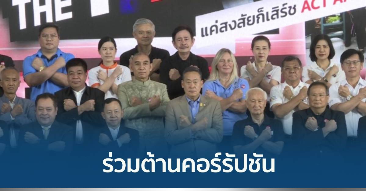 กรุงเทพฯ 6 ก.ย. – องค์กรต่อต้านคอร์รัปชันฯ รวมพลังคนไทยต่อต้านคอร์รัปชัน ร่วมประกาศพันธสัญญาต้านโกงเสนอ 5 ข้อเรียกร้องต่อรัฐบาลใหม่ ตั้งวอร์รูมแก้ปัญหาเชิงรุก เปิดตัวเว็บไซต์ “ACT Ai” ให้คนไทยร่วมตรวจสอบโครงการเสี่ยงทุจริตคอร์รัปชัน