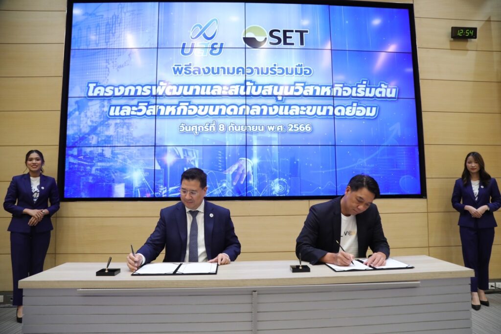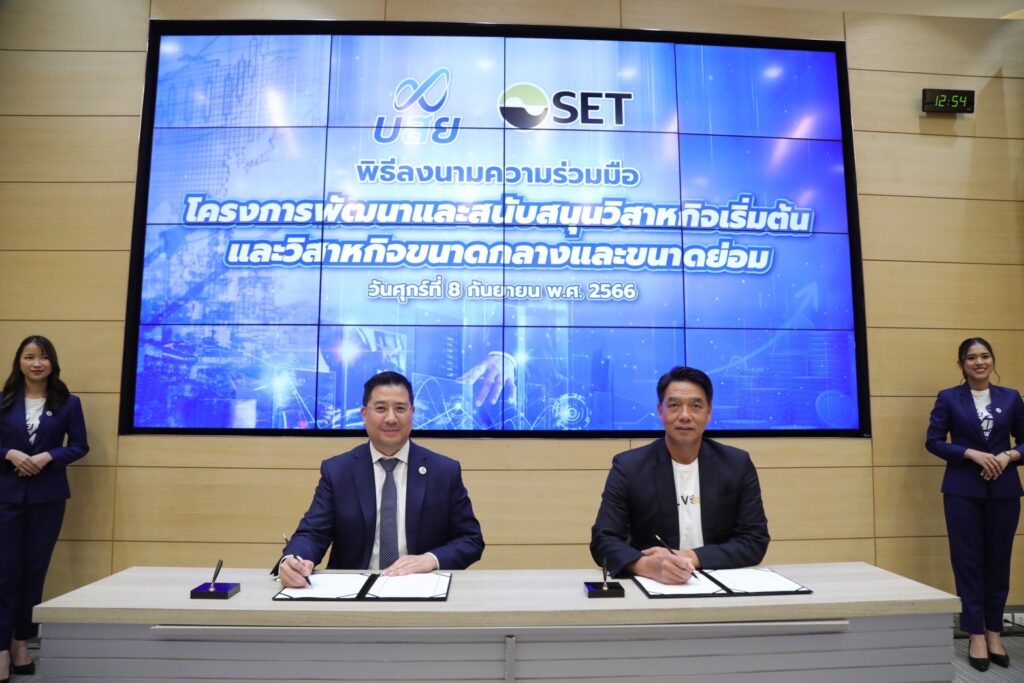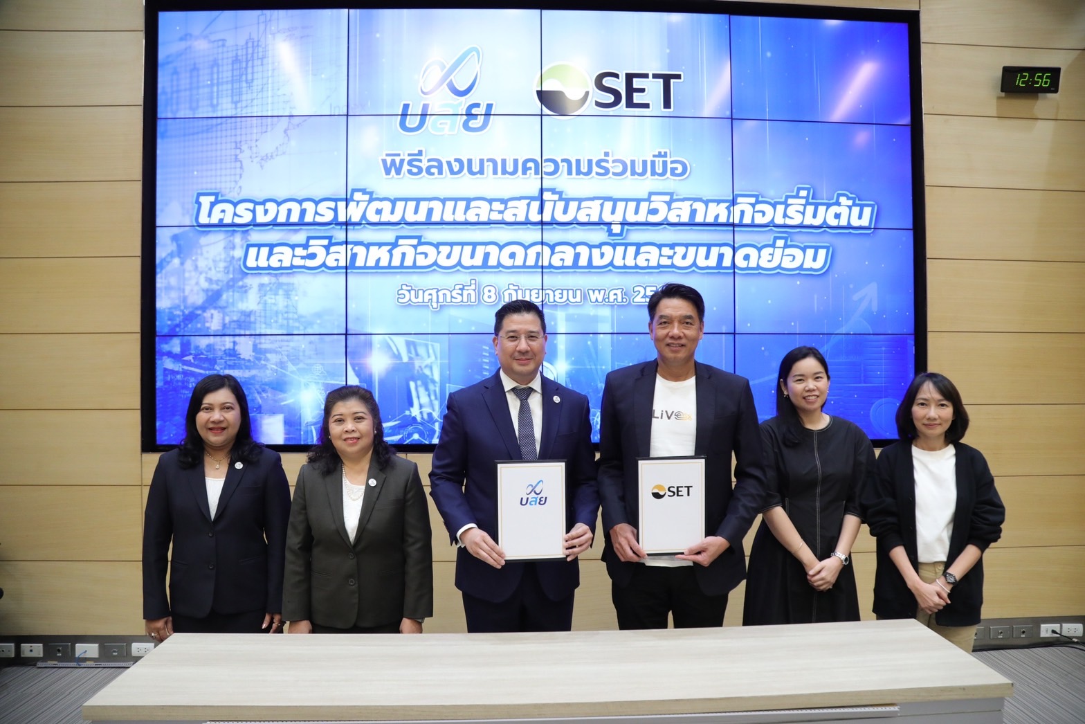 11 ก.ย. – บรรษัทประกันสินเชื่ออุตสาหกรรมขนาดย่อม (บสย.) ผนึกตลาดหลักทรัพย์แห่งประเทศไทย (SET) ลงนามบันทึกข้อตกลงความร่วมมือ โครงการ SME Platform พัฒนาและสนับสนุนวิสาหกิจเริ่มต้นและวิสาหกิจขนาดกลางและขนาดย่อม เชื่อมโยง Start up – SMEs ด้วยการบ่มเพาะความรู้พื้นฐานด้านการเงิน เพื่อการเป็นผู้ประกอบการที่มีคุณภาพและเตรียมความพร้อมการเติบโตไปสู่โอกาสการระดมทุนในตลาดทุนต่อไป